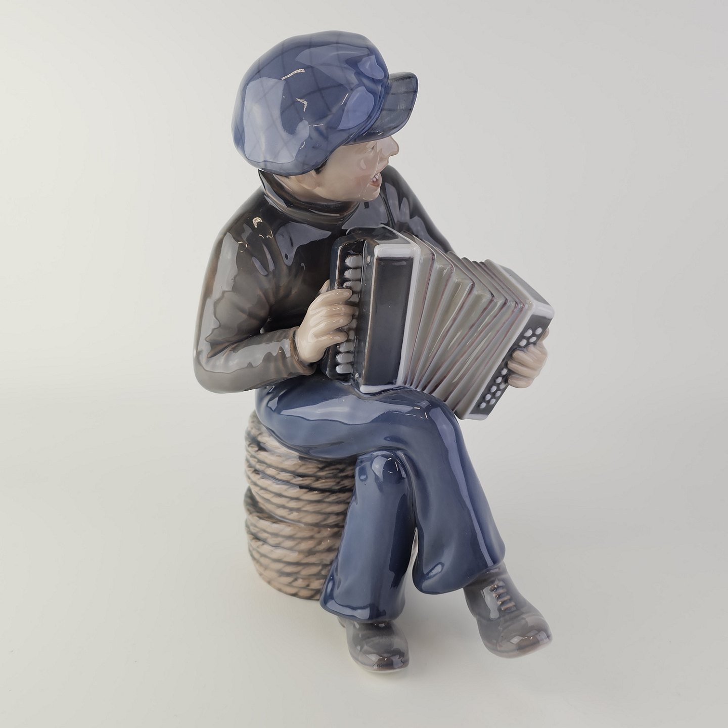 Figur i hvidt porcelæn med motiv af en dreng som spiller harmonikaNr. 1154