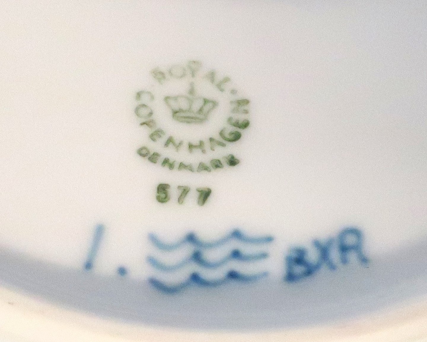 Königliches Kopenhagen. Musselmalet Vollspitze. Runde Schüssel. Modell 577 (1018). Höhe 6 cm. Durchmesser 21 cm. (2 Wahl)