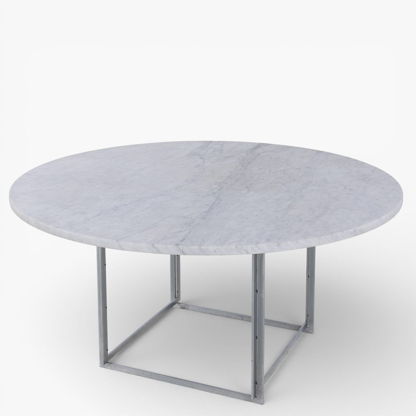 Poul Kjærholm / E. Kold Christensen.PK 54 - Rundt spisebord med lys flintrullet marmor-plade på stel af matforkromet stål. Formgivet i 1963.