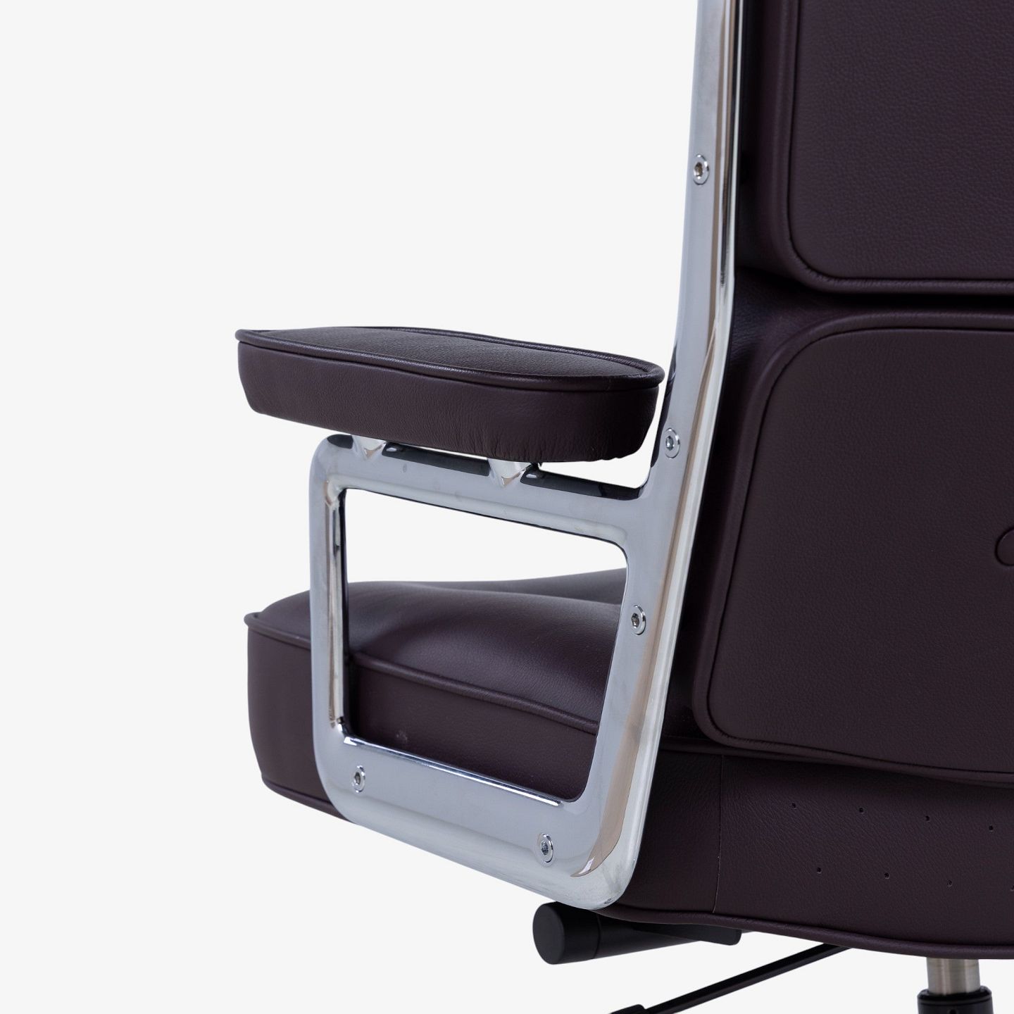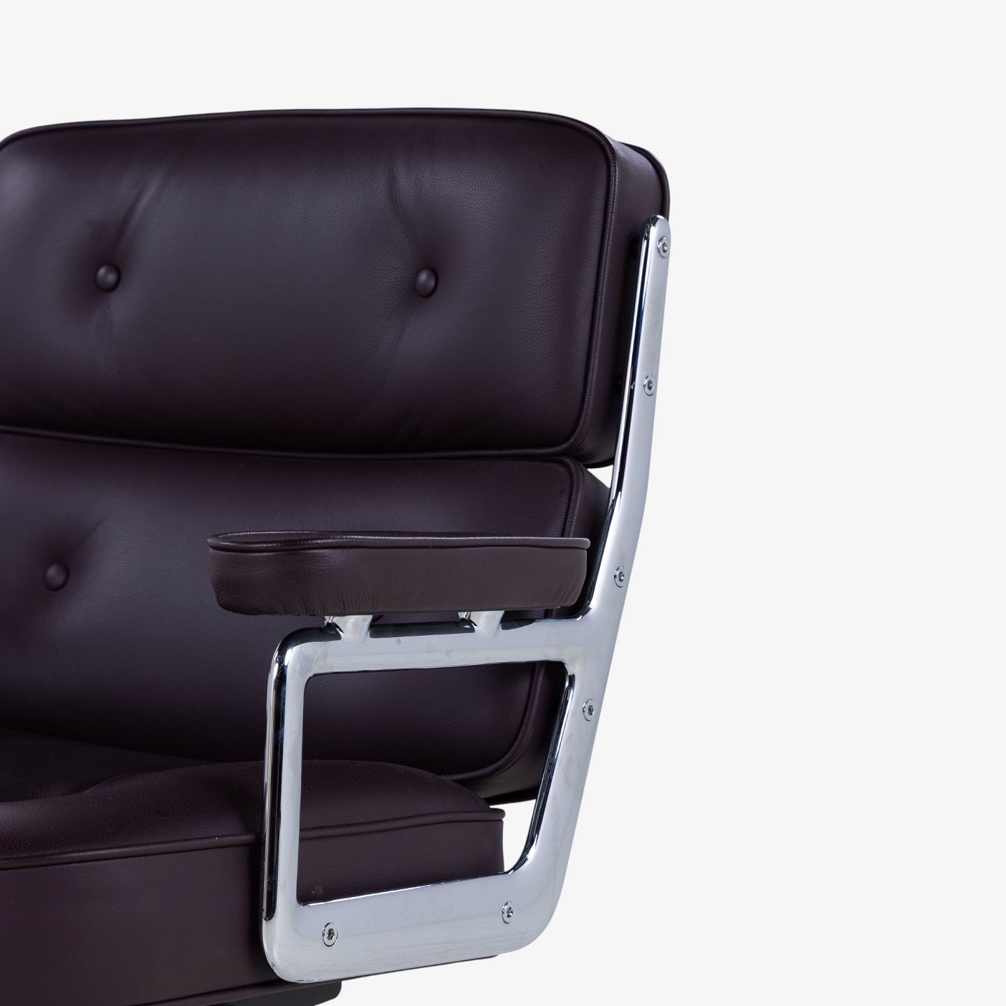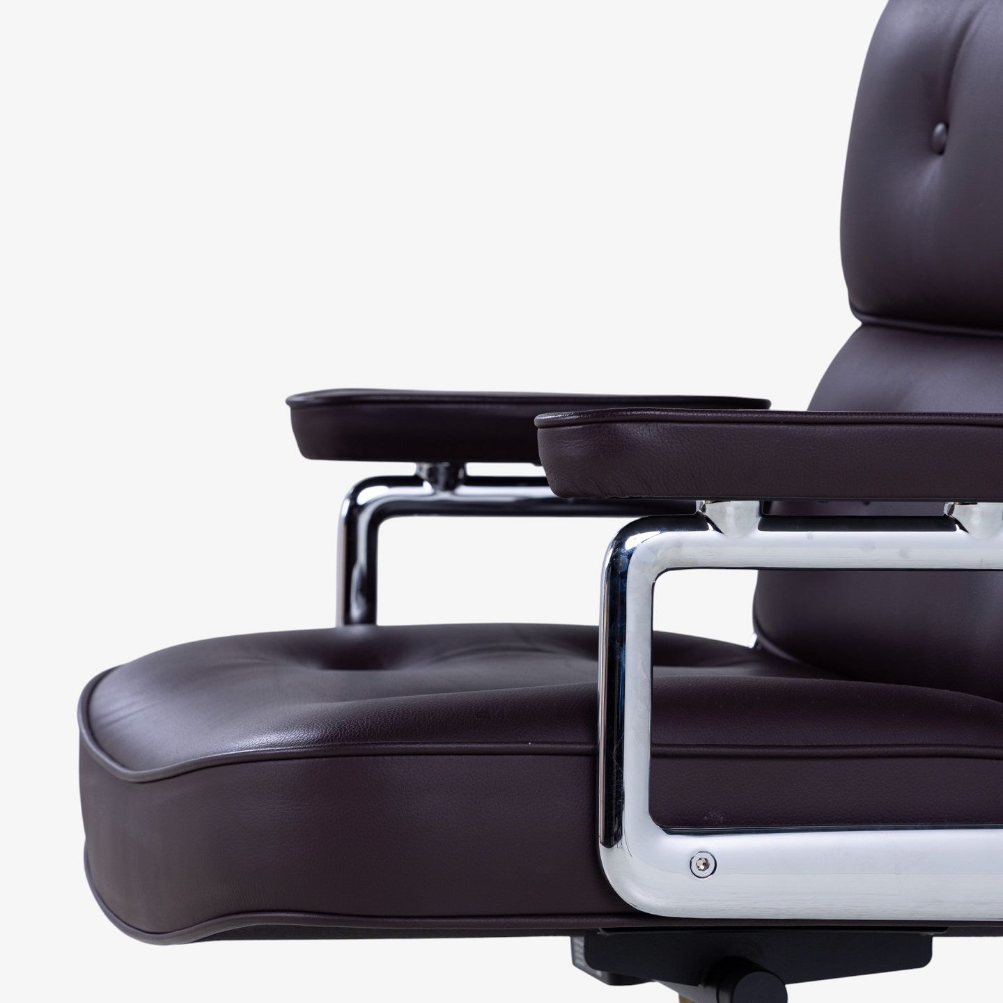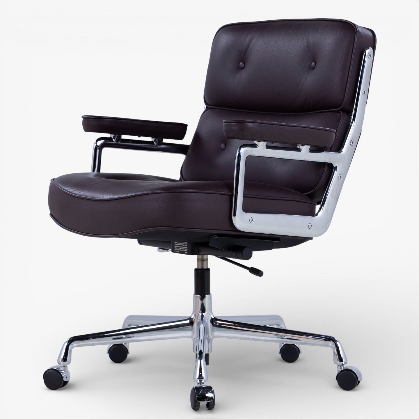 Ray & Charles Eames / Vitra.ES-104 - Kontorstol i mørkebrunt læder m. armlæn og stel i stål m. højdejustering. Mærket fra producent.