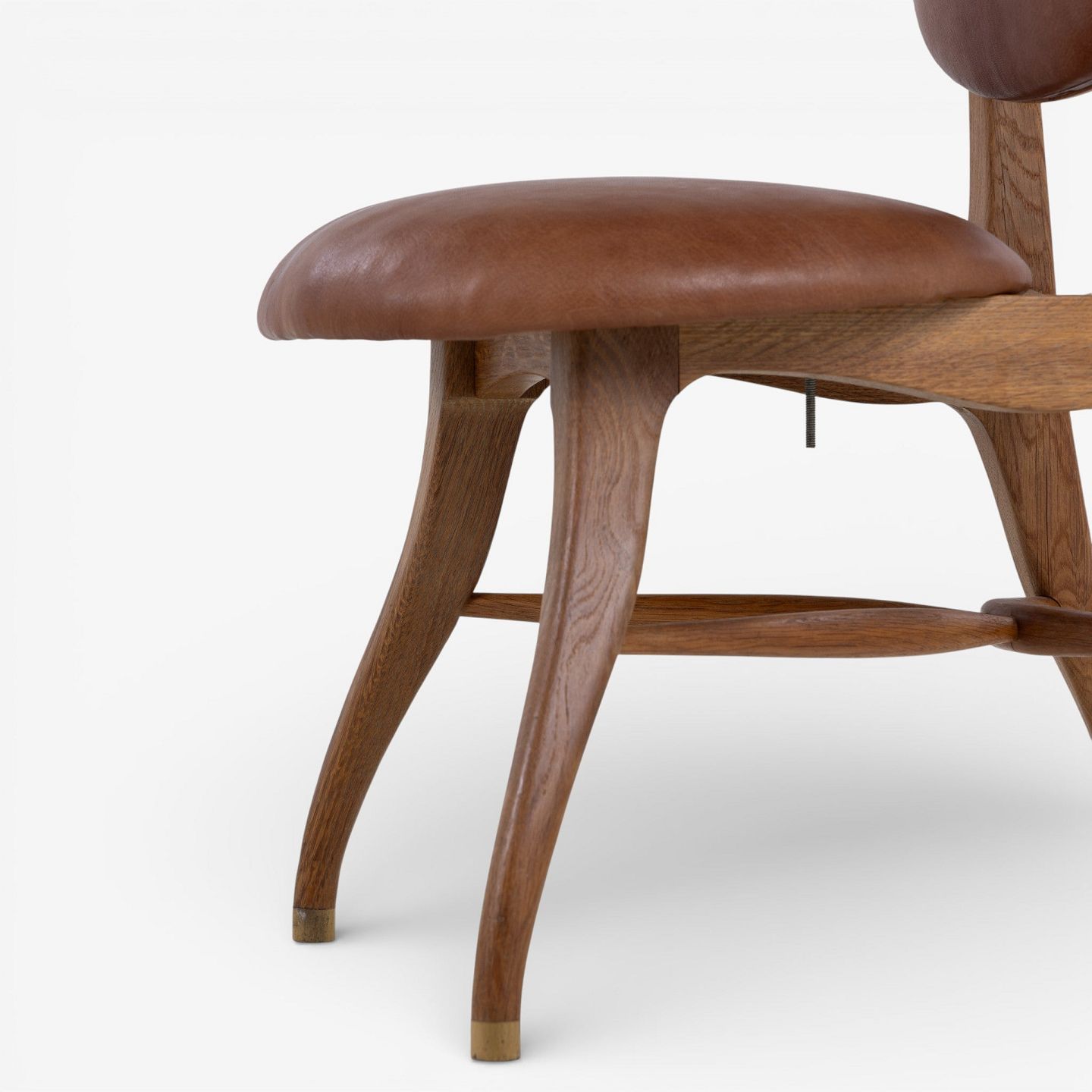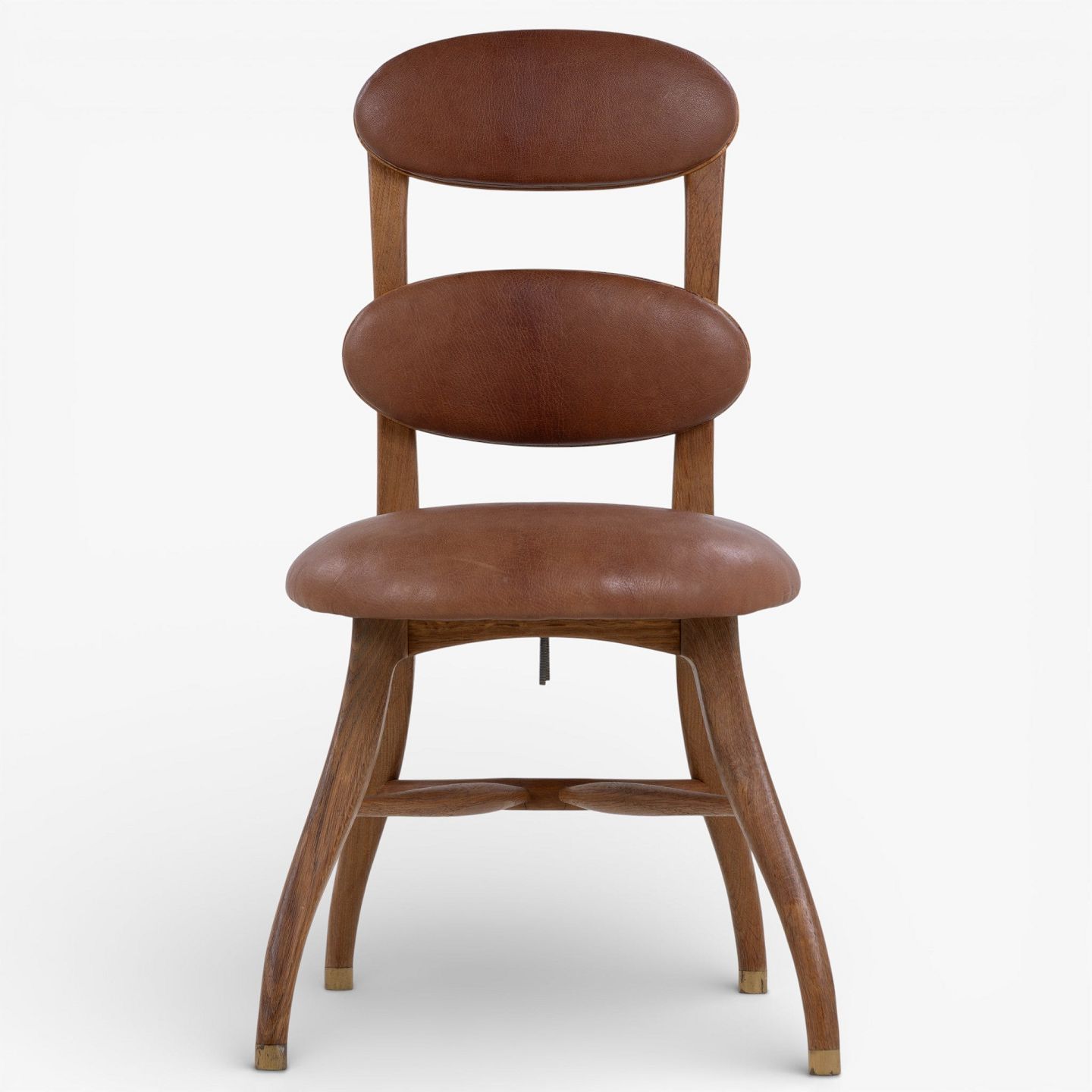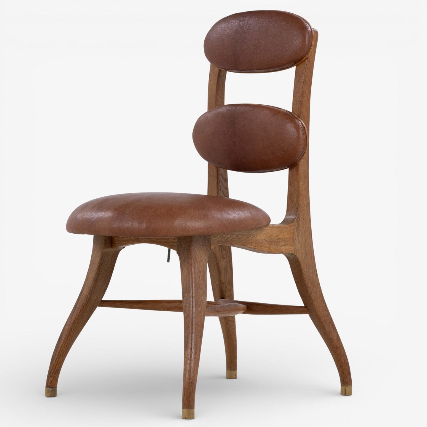 Vilhelm Lauritzen.'Musikerstol' med stel i patineret egetræ og justerbart sæde og ryg i patineret nigerskind. Formgivet i 1942.