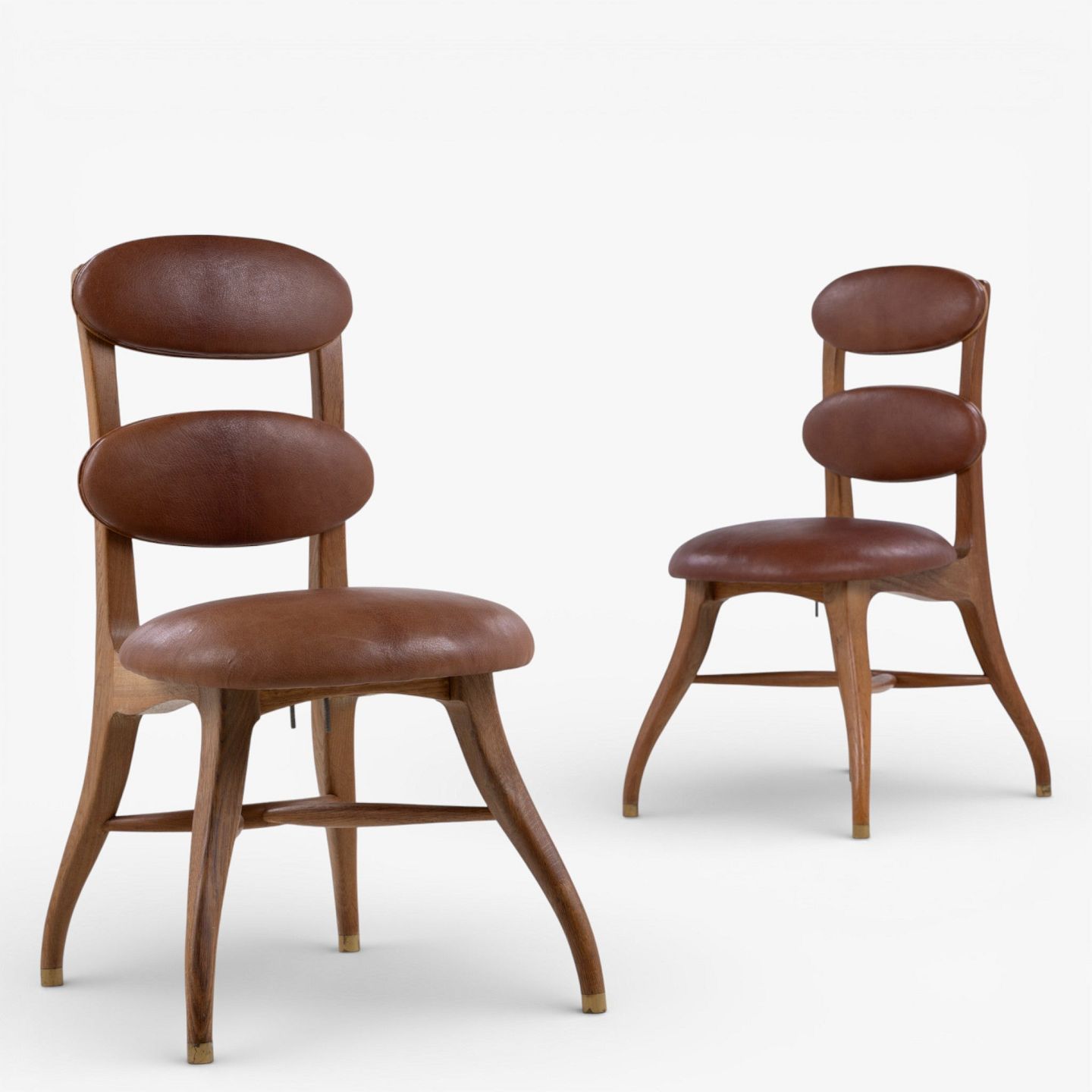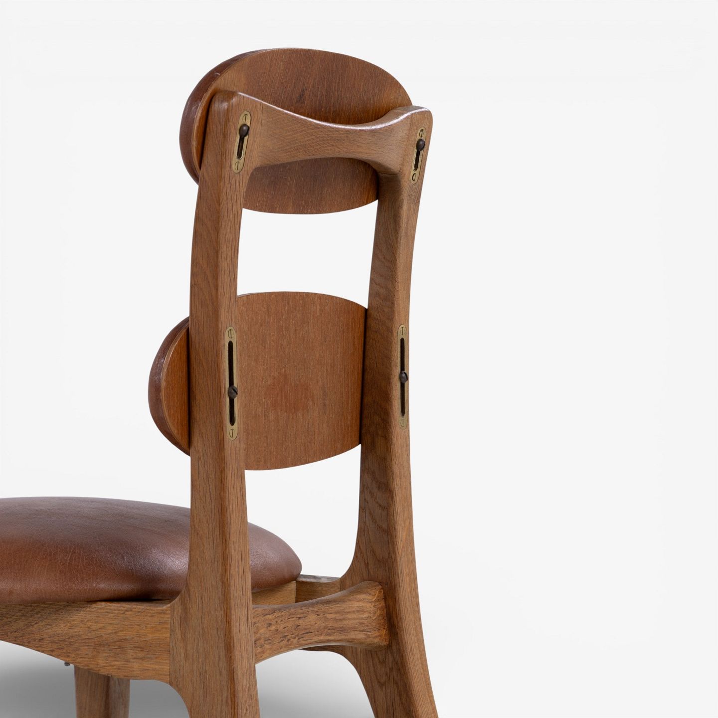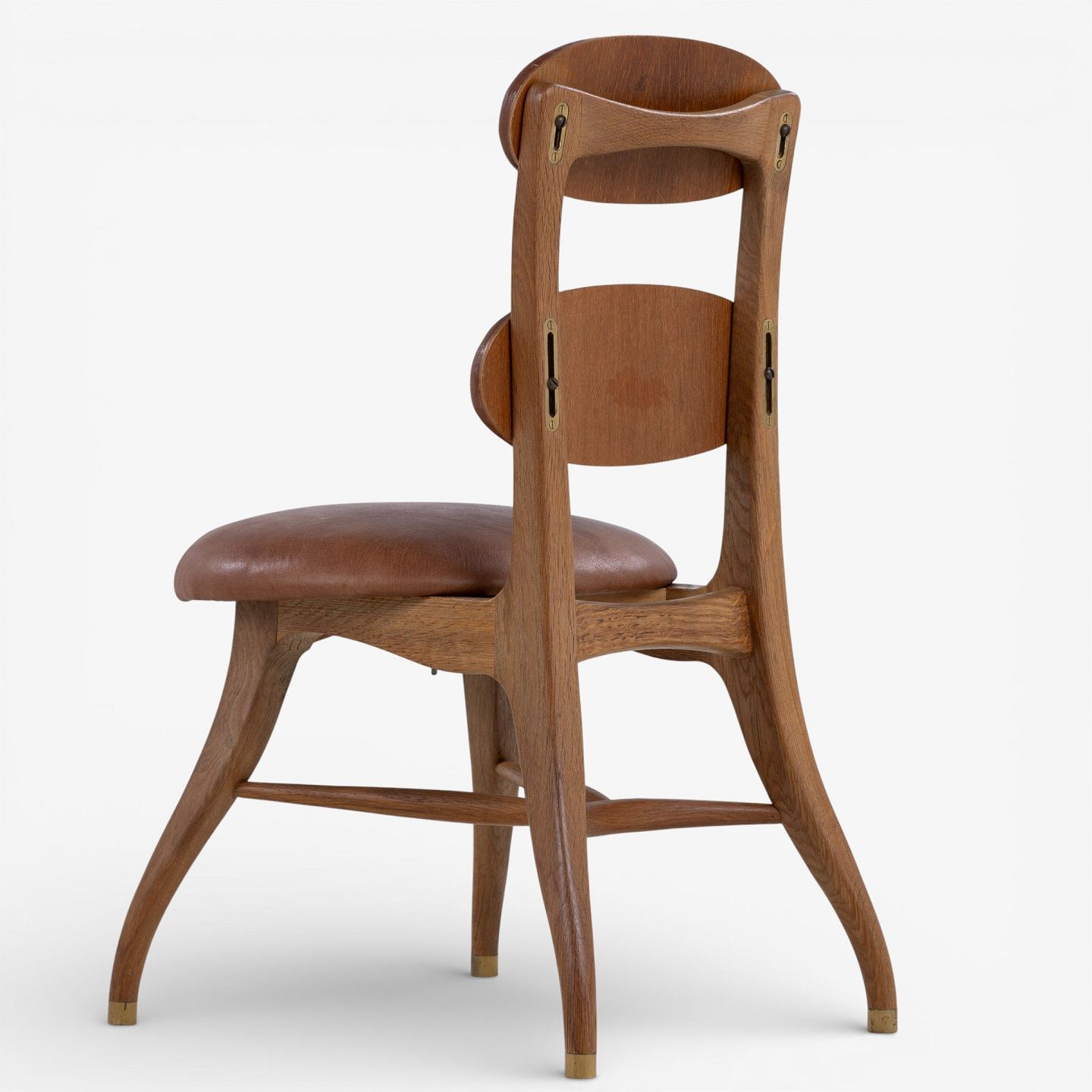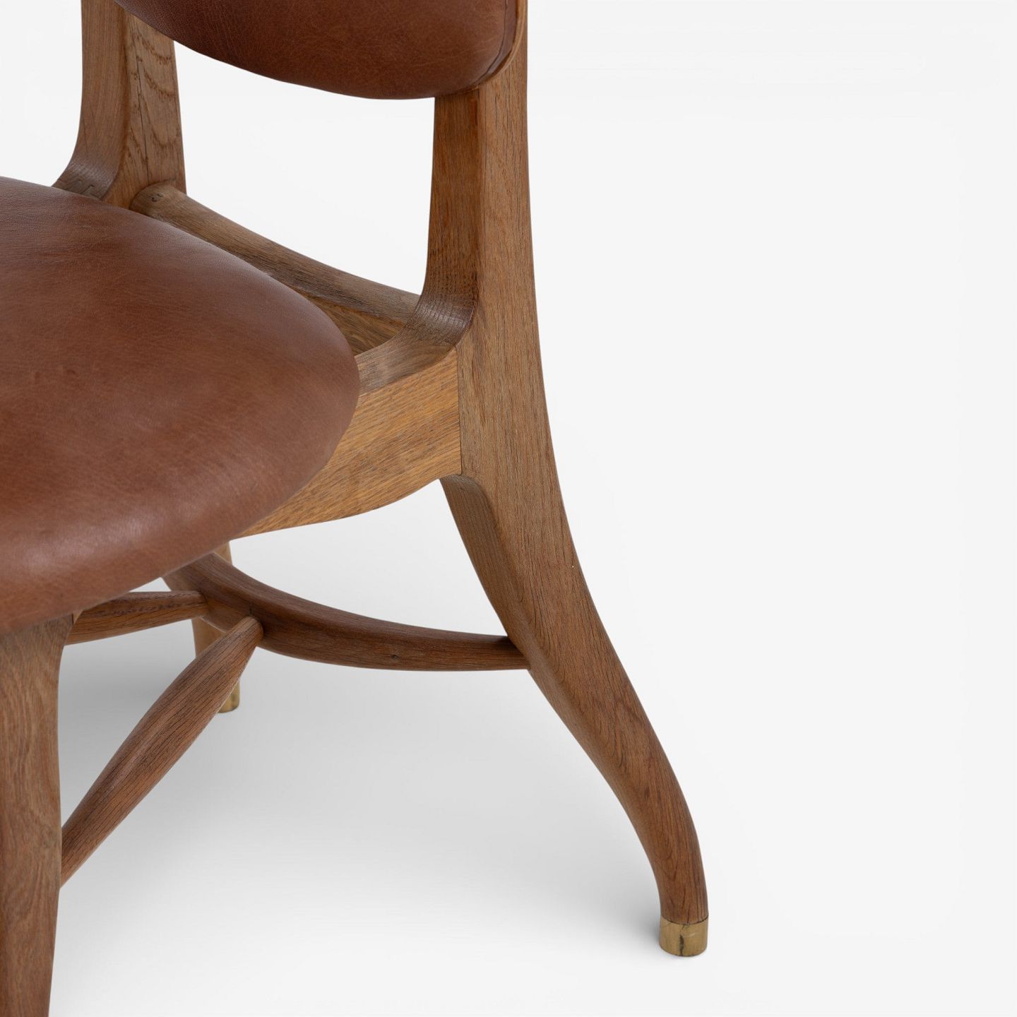 Vilhelm Lauritzen.'Musikerstol' med stel i patineret egetræ og justerbart sæde og ryg i patineret nigerskind. Formgivet i 1942.