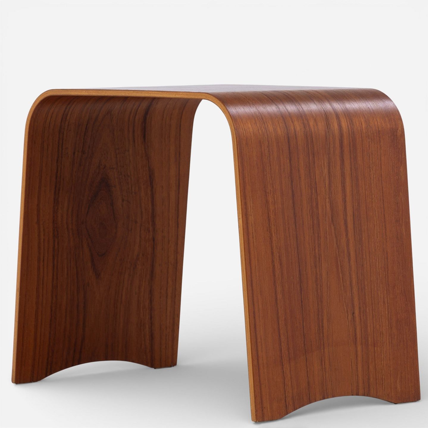 Hans Ludvigsen / Fritz Hansen.Model 4515 - Taburet/sidebord i formbøjet teak. Formgivet i 1958. Brændemærket fra producent.