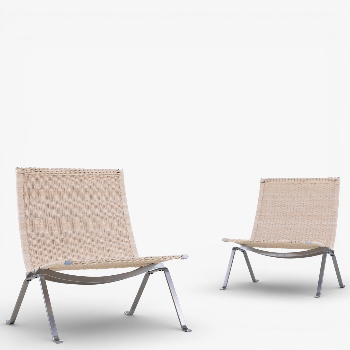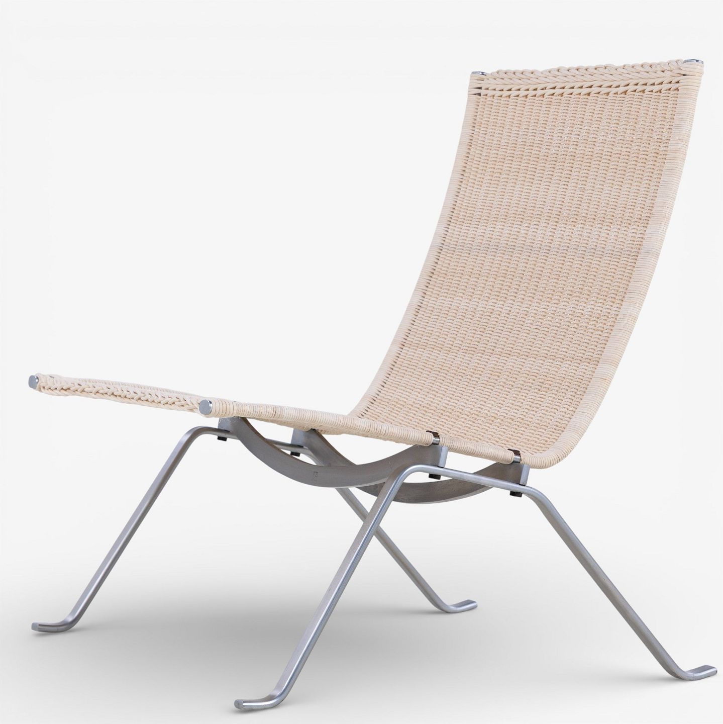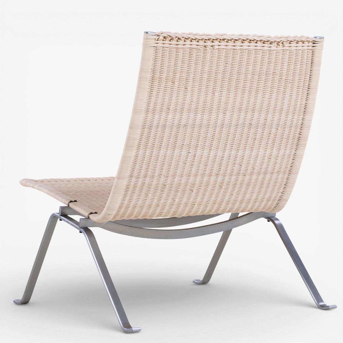 Poul Kjærholm / E. Kold Christensen.PK 22 - Lænestol i nyflettede peddigrør med stel i stål. Stemplet fra producent.