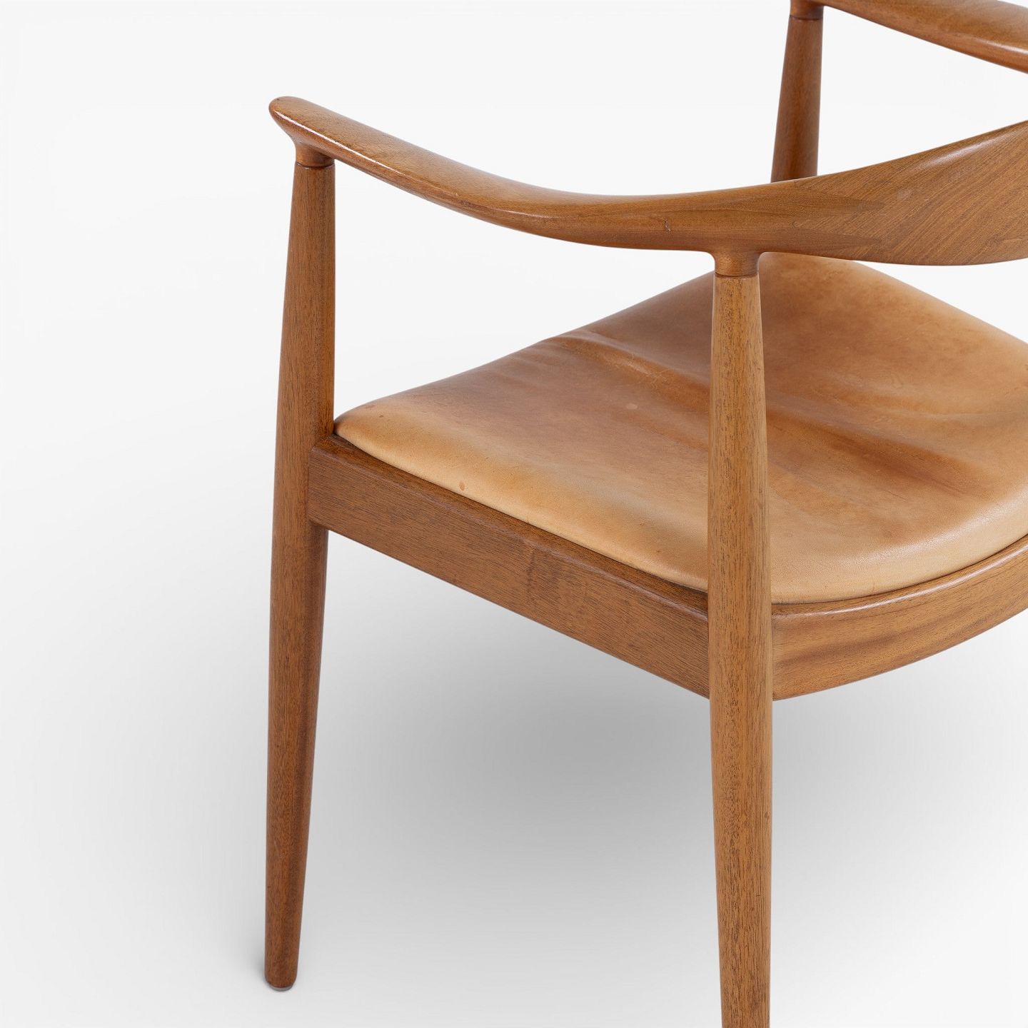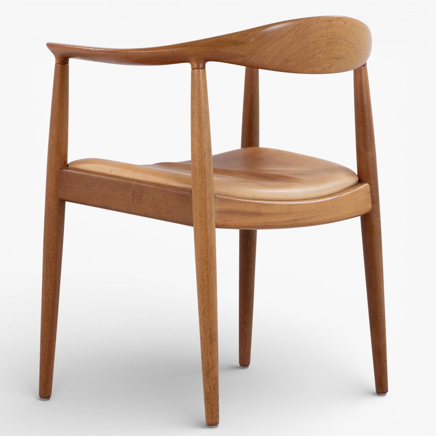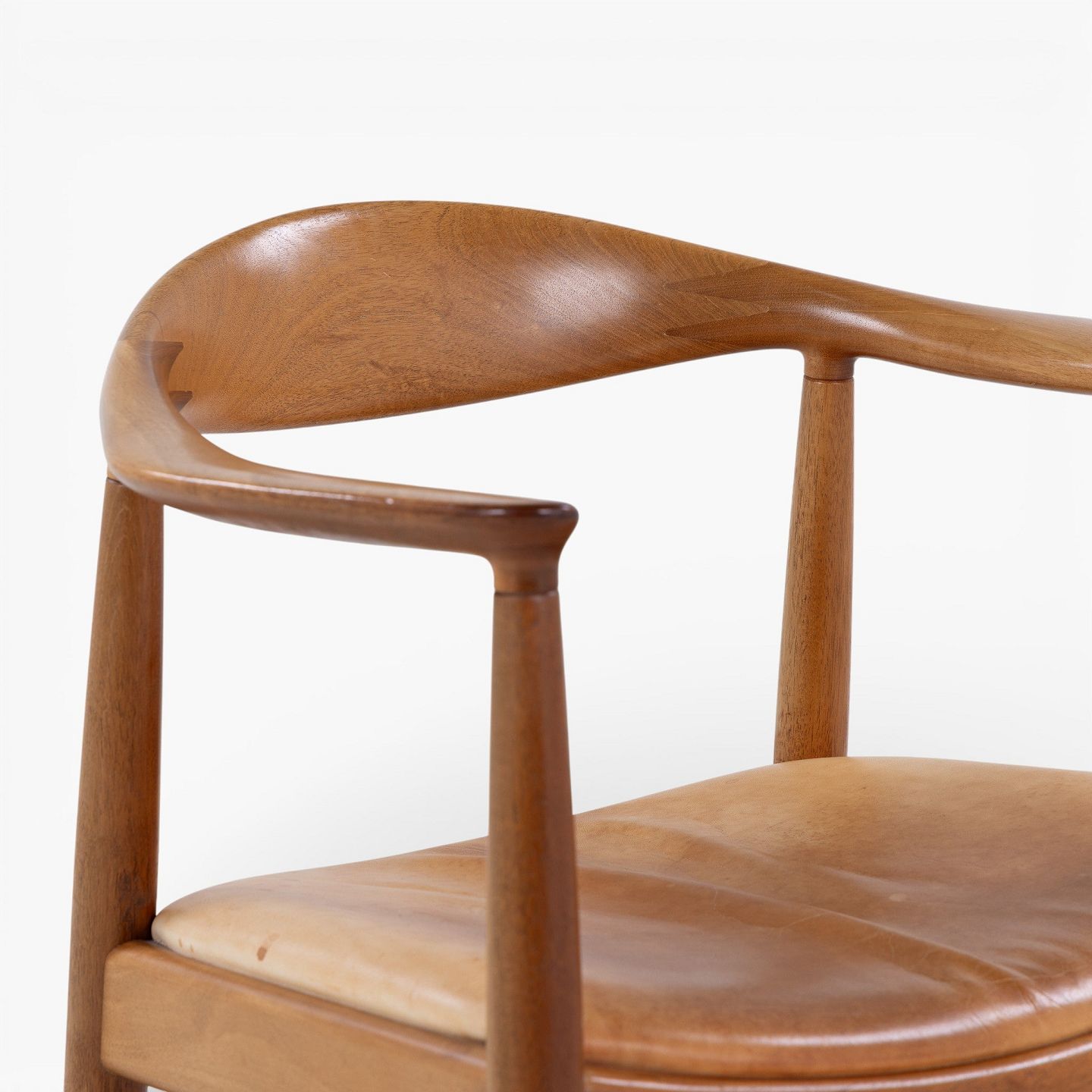 Hans J. Wegner / Johannes Hansen.JH 503 - 'The Chair'-armstol i mahogni med sæde i patineret naturlæder. Mærket fra producent.