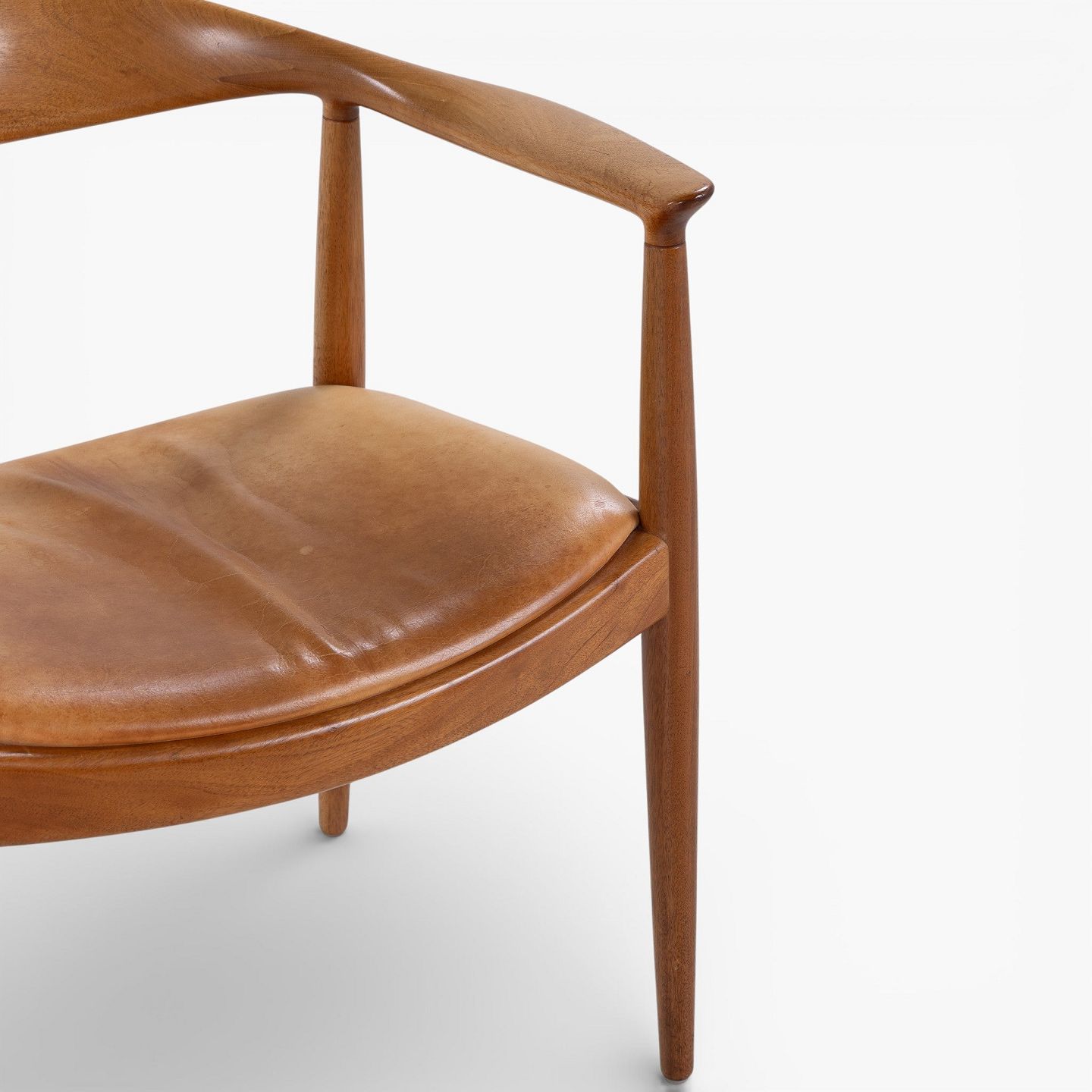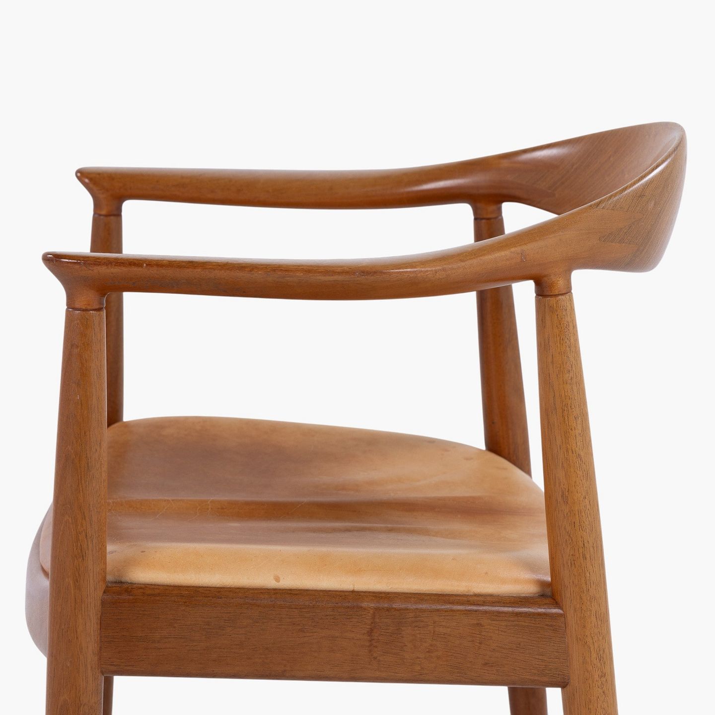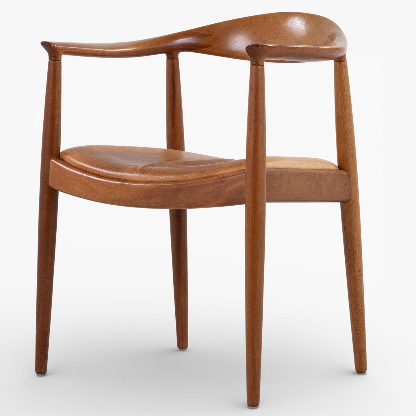 Hans J. Wegner / Johannes Hansen.JH 503 - 'The Chair'-armstol i mahogni med sæde i patineret naturlæder. Mærket fra producent.