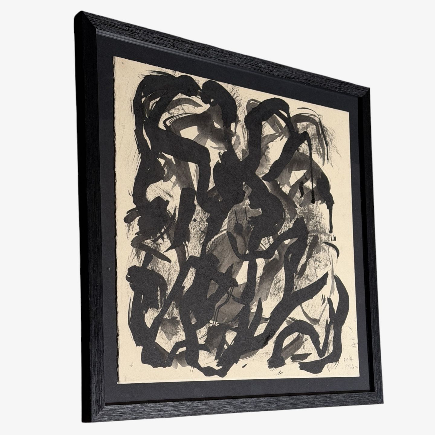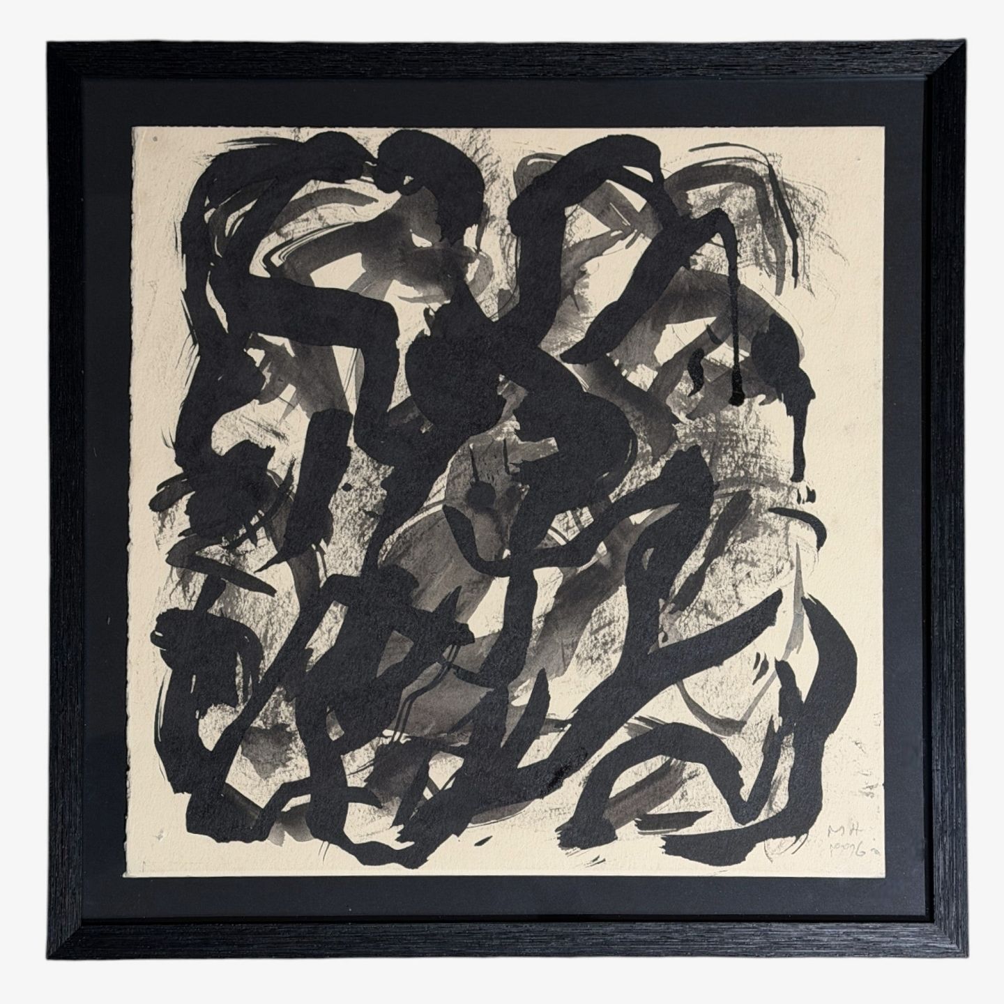Mogens Andersen.Gouache på papir i sort kvadratisk ramme. Signeret. 1996.