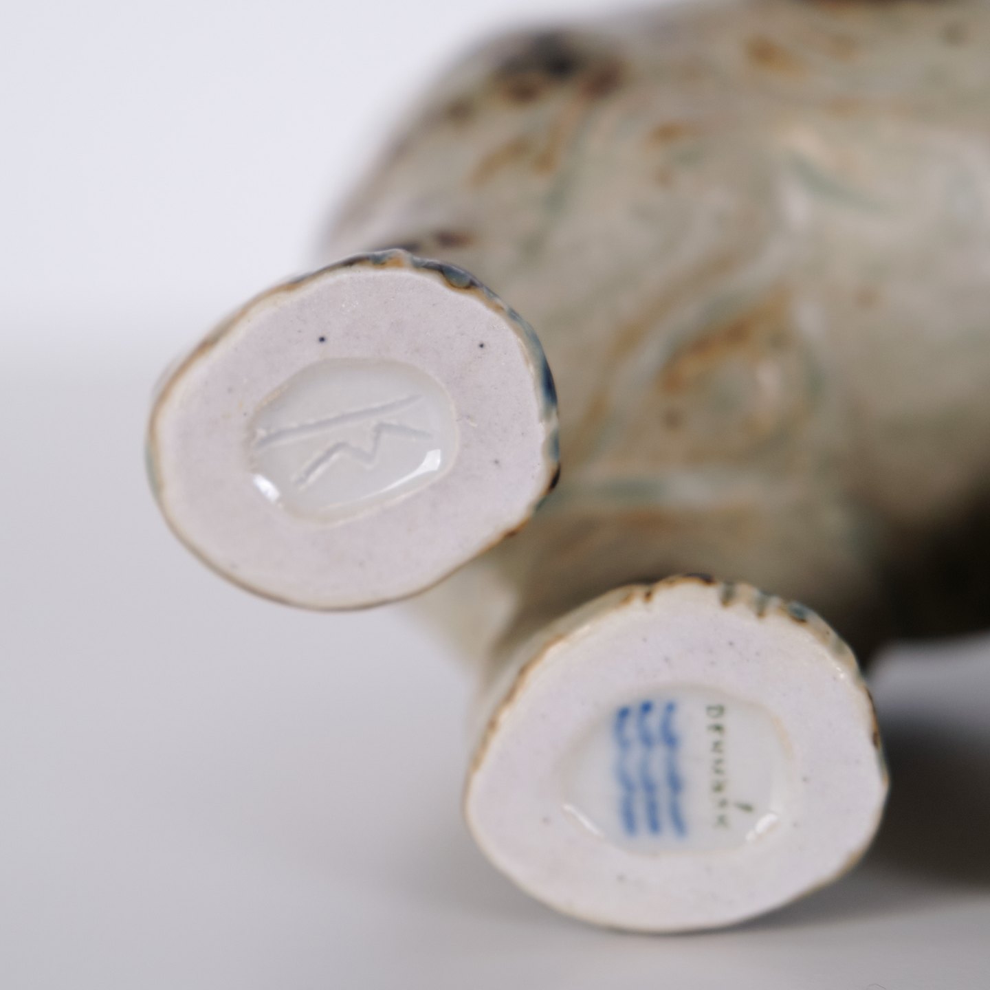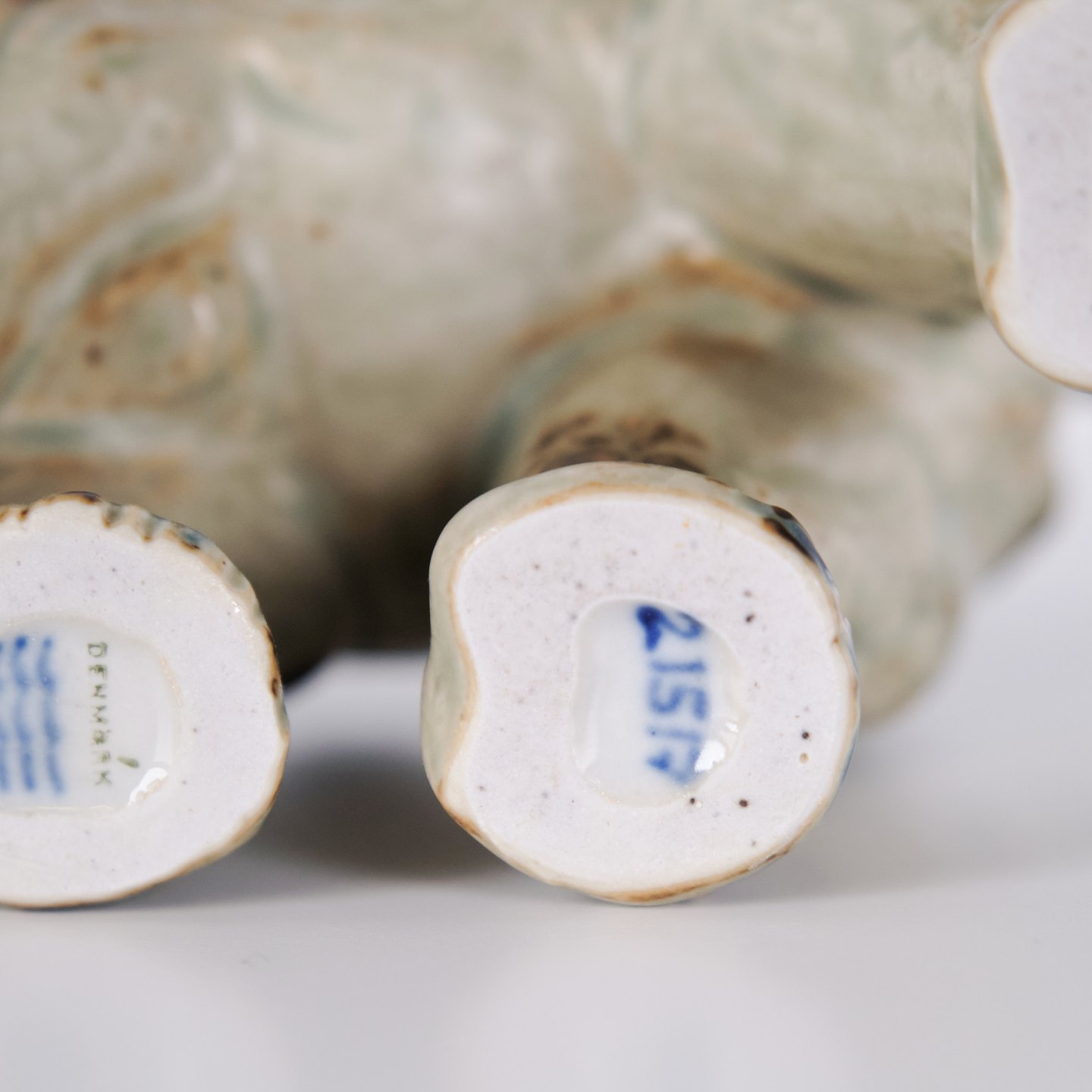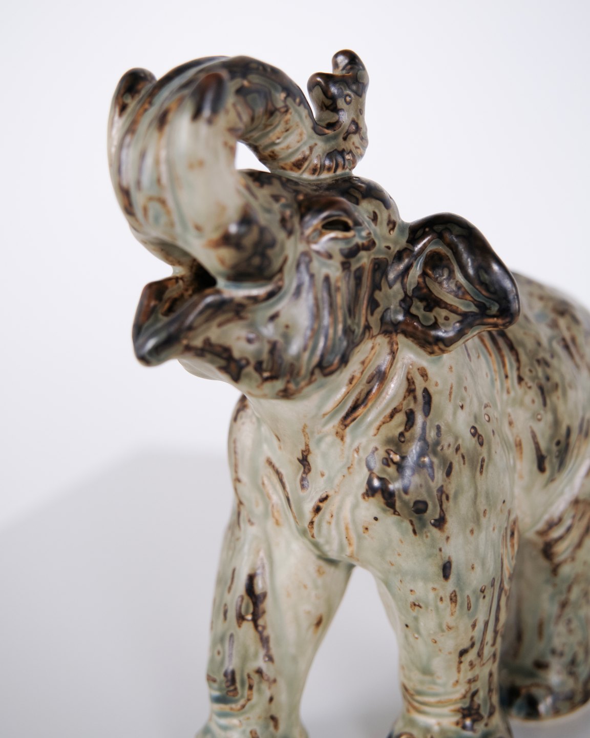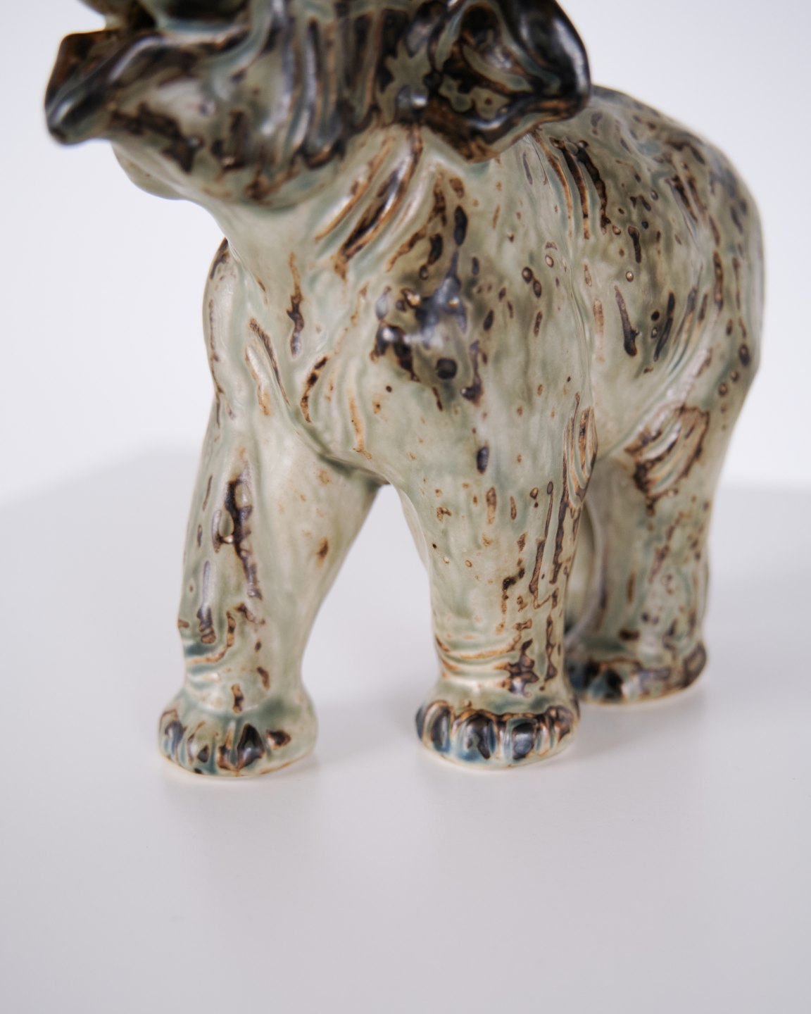 Steinzeugfigur in Form eines stehenden Elefanten, Modell 21517, entworfen von Knud Kyhn für Royal Copenhagen. Die Figur wurde aus Steinzeug gefertigt und gehört zu Knud Kyhns bekannten Tierdarstellungen, die bei Royal Copenhagen vor allem ab den 1930er-Jahren produziert wurden. Kyhns Arbeiten sind für ihre klare Formgebung und materialbetonte Ausführung bekannt und werden von Sammlern dänischer Keramik geschätzt.Lager: 1