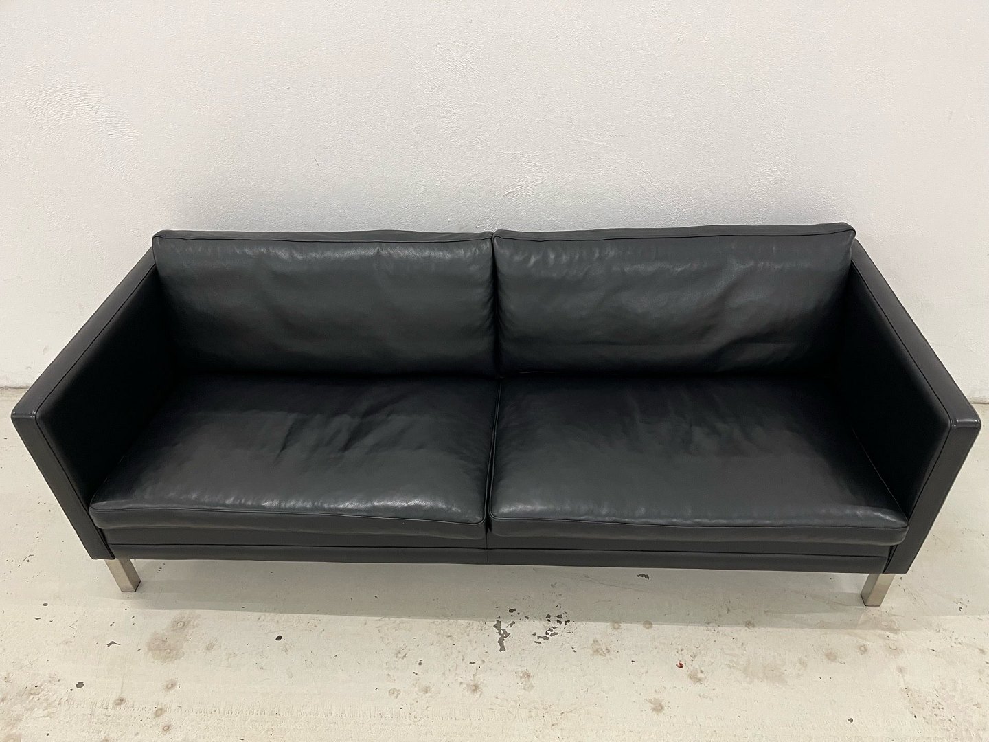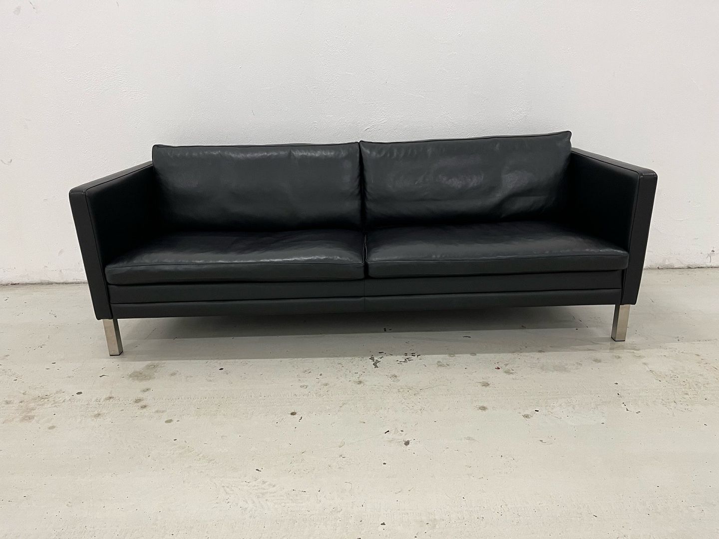 Mogens Hansen MH276 – 3-Sitzer-Sofa. Exklusives 3-Sitzer-Sofa, Modell MH276, entworfen von Mogens Hansen. Das Sofa ist aus Loke-Leder (Gruppe 2) in Schwarz gefertigt und verfügt über elegante Beine aus gebürstetem Stahl. Neupreis: 42.959 DKK. Das Sofa stammt aus einem Nichtraucherhaushalt ohne Haustiere, wurde nur sehr wenig benutzt und weist keinerlei Kratzer, Dellen oder sonstige Mängel auf. Es befindet sich in einem sehr guten Zustand. Vor Kurzem wurde es professionell gereinigt und das Leder gepflegt, was sowohl die Optik als auch die Langlebigkeit gewährleistet. MH276 ist das letzte von Mogens Hansen entworfene Händler