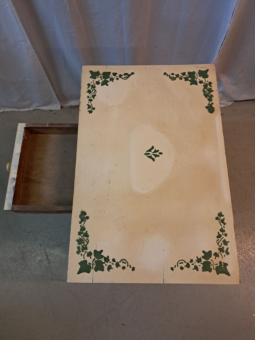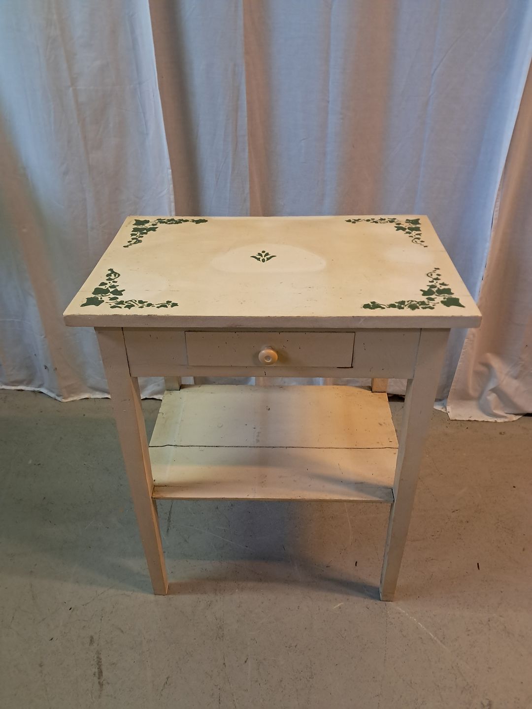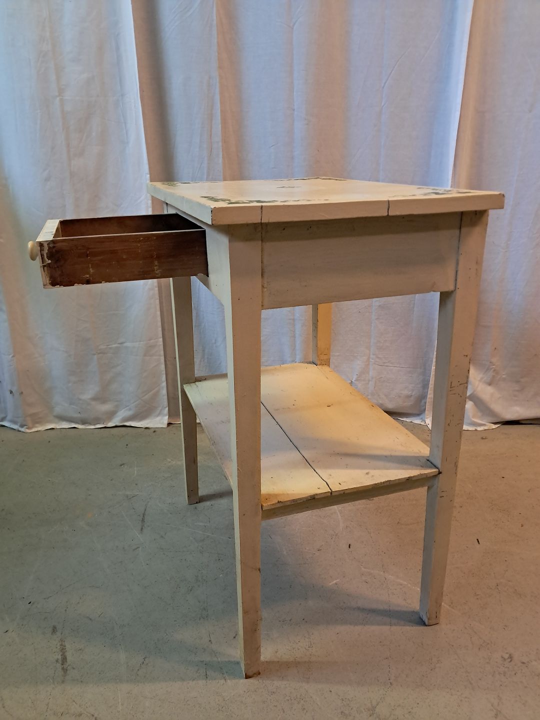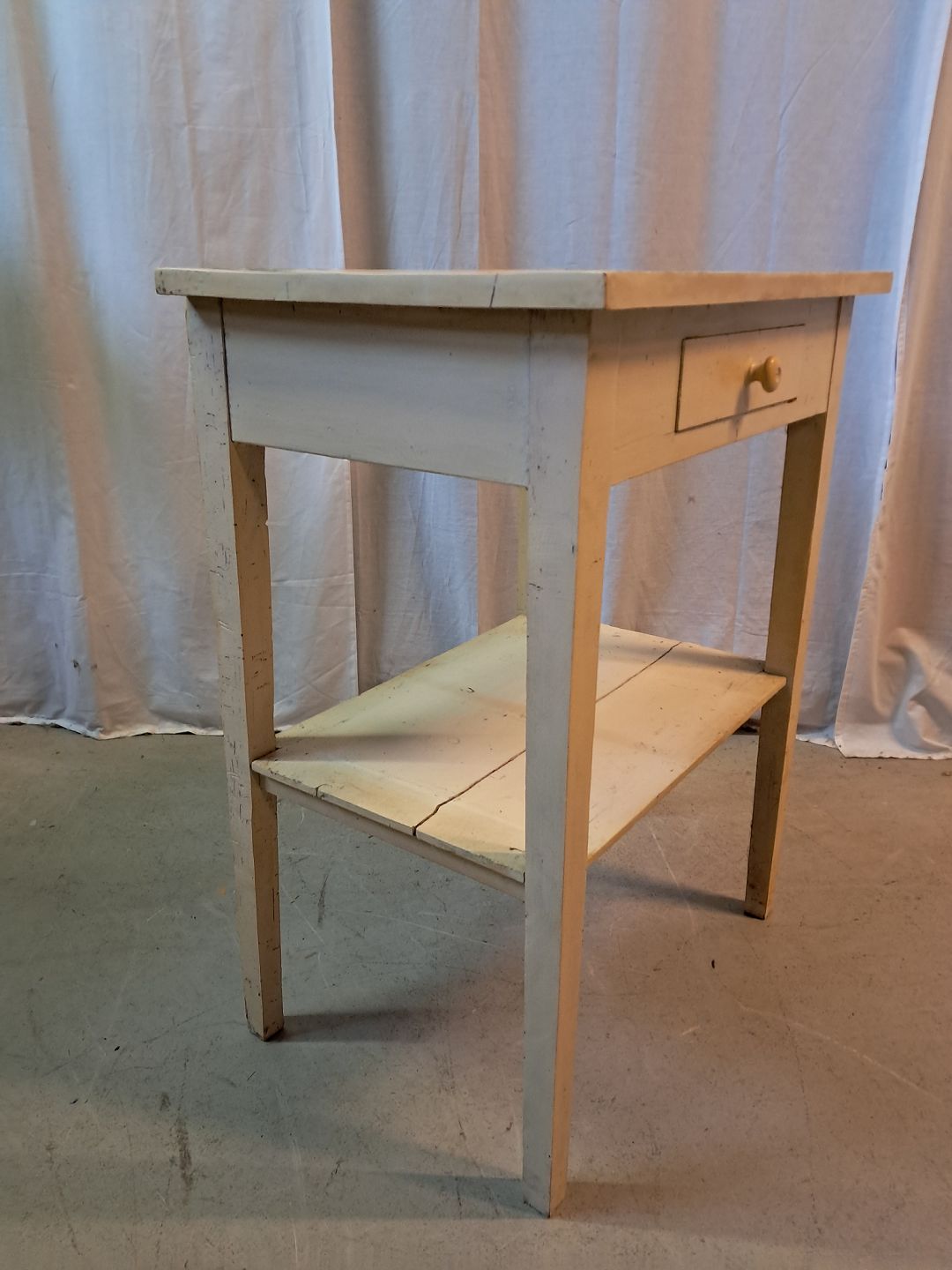 Lampebord i malet massivt fyrretræ, fra 1910erne.Det har brugsspor.