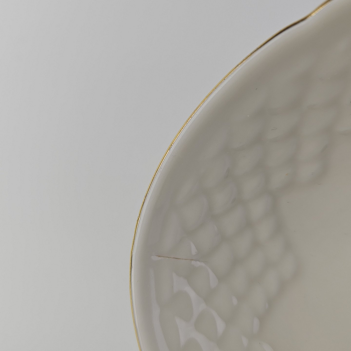 Frigga Anemone er cremefarvet porcelæn dekoreret med motiv af anemoner og bøgeløv med guldkant