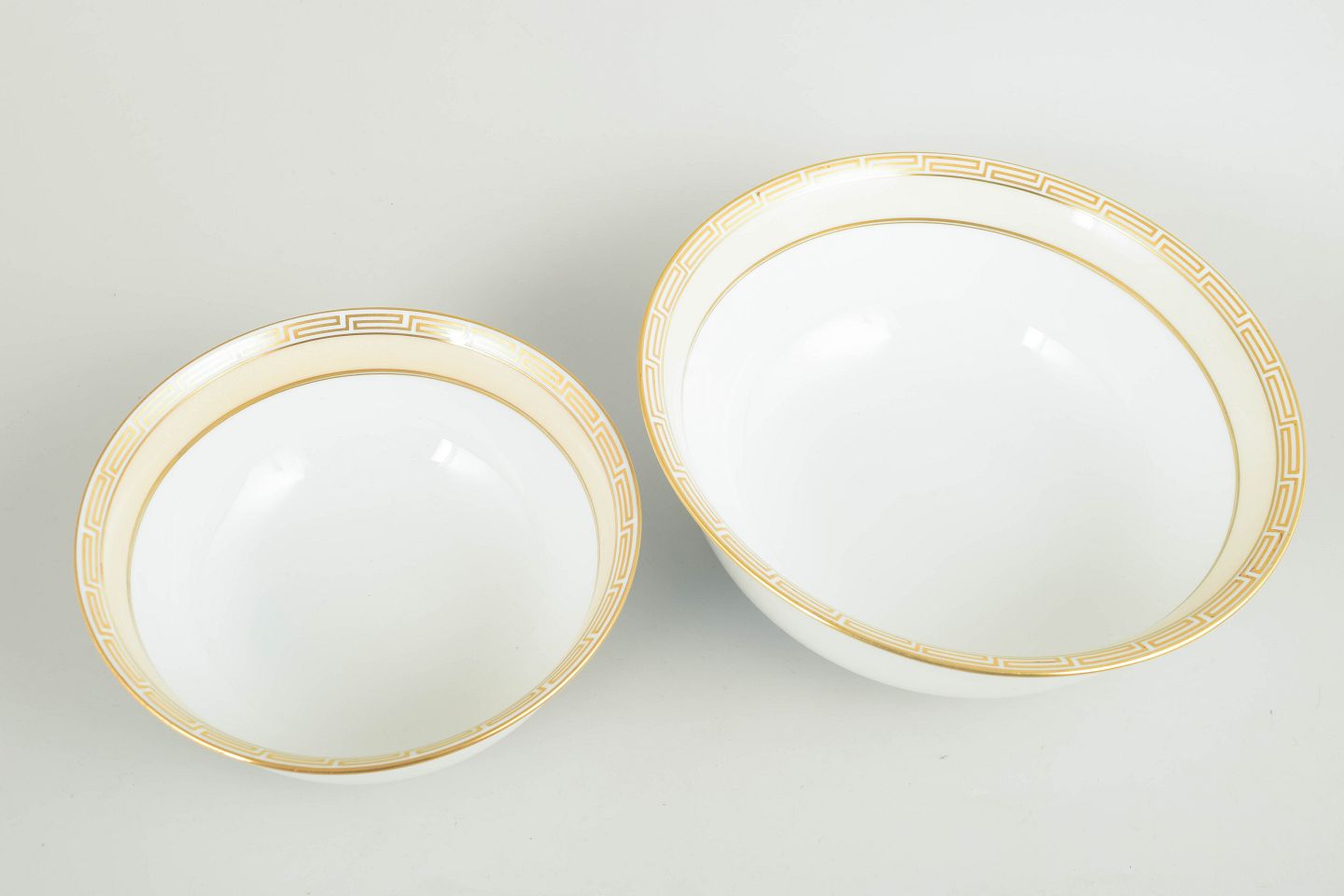 Bing & Grøndahl Rossini , sæt med 2 skåle, Art Deco.To skåle i hvidglaseret porcelæn med forgyldt geometrisk bort i klassisk Art Deco-stil langs randen.