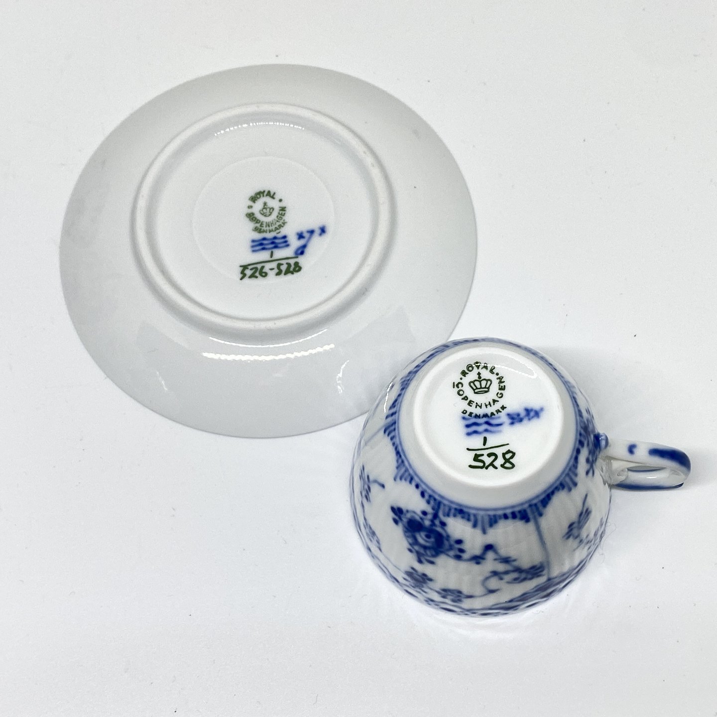 Royal Copenhagen/Kgl Musselmalet halvblonde kaffekop og underkop.