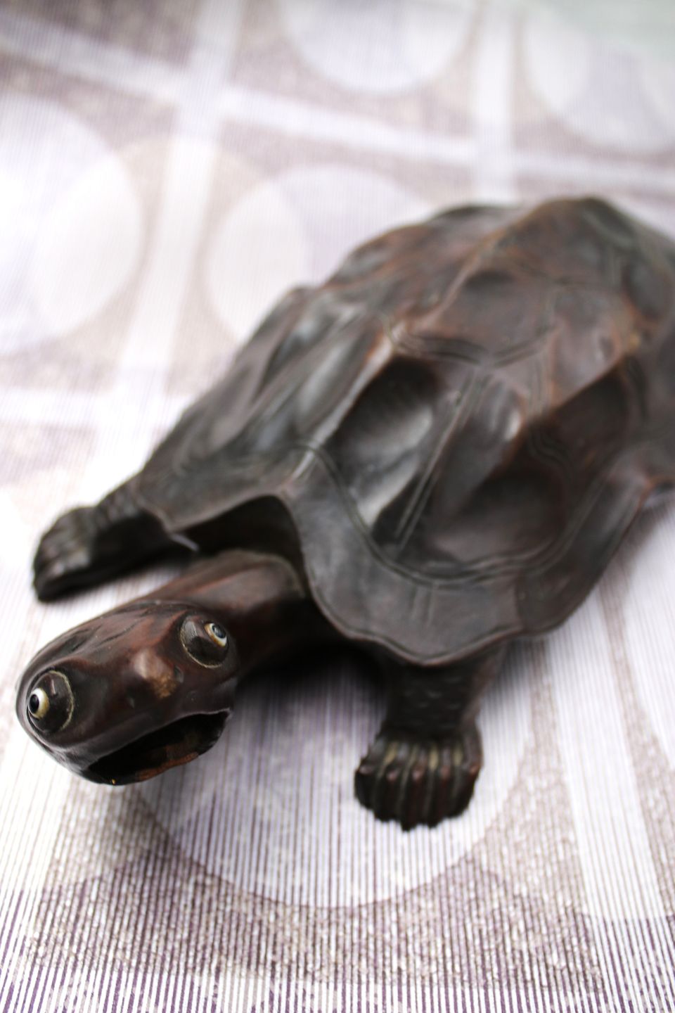 Gammel skildpadde udskåret i massivt mørkt træ med en rigtig fin patina.