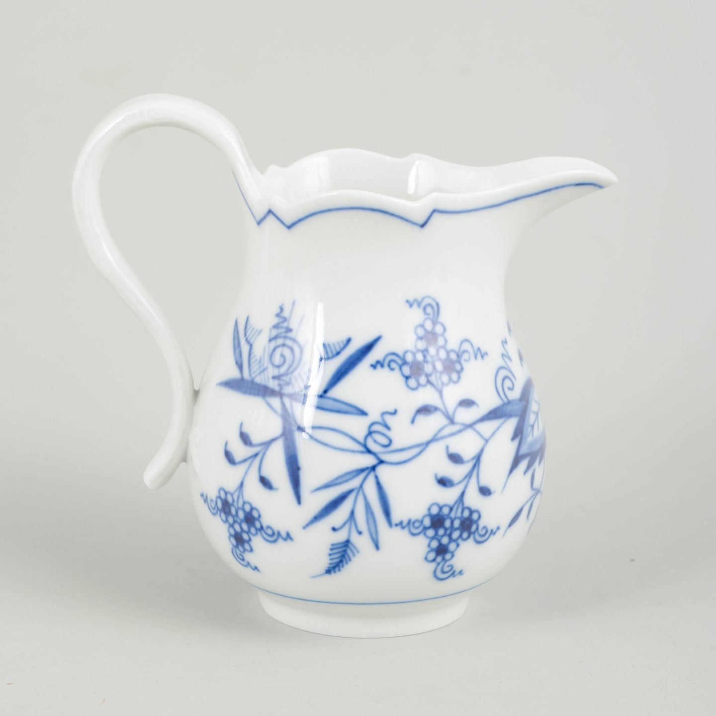 Meissen, blå løgmønstret flødekande.Klassisk flødekande i porcelæn dekoreret i underglasurblåt med blå Løgmønster og bølget kant.