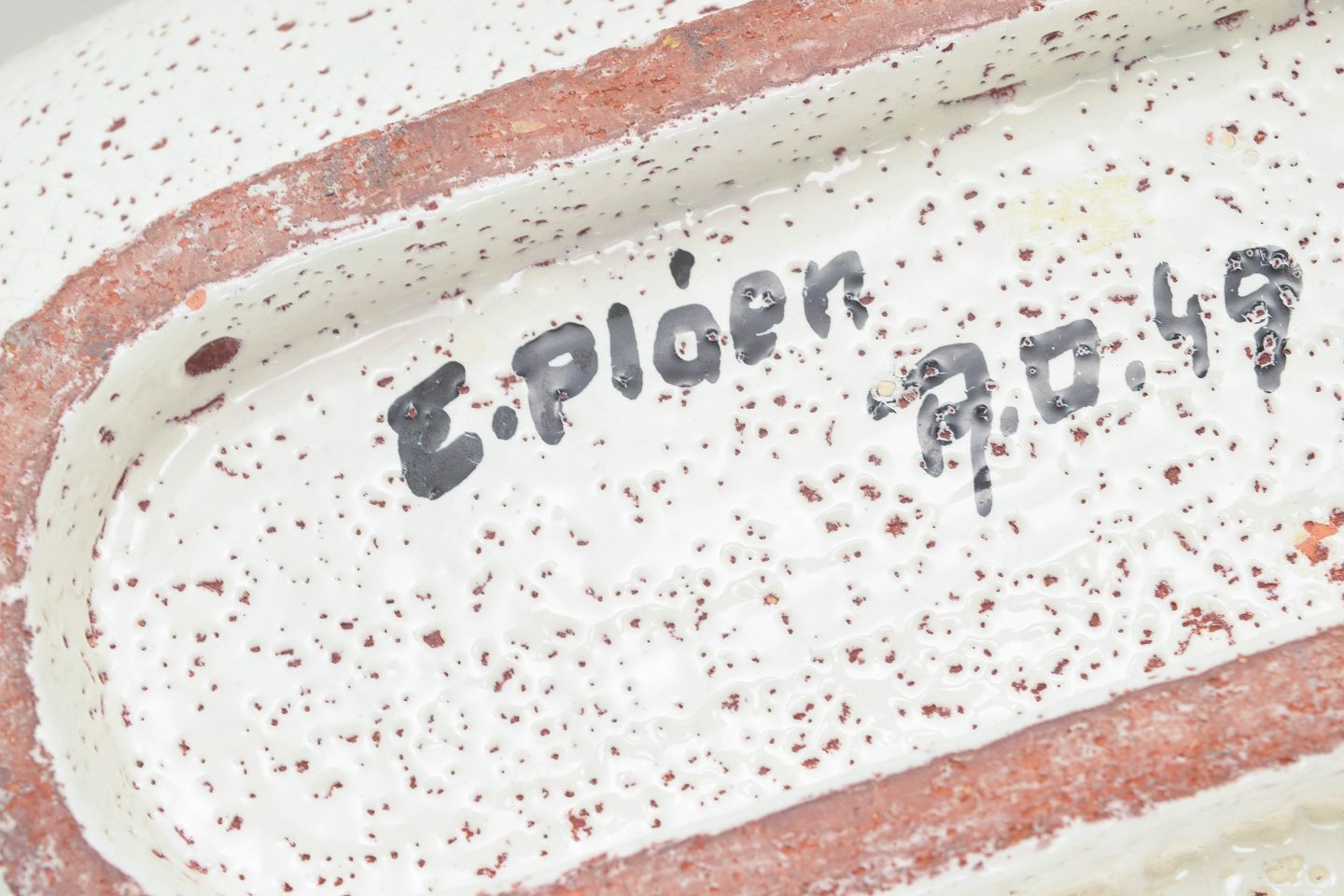 Erik Pløen (1925–2004) arbejdede med keramiske vægrelieffer og skulpturelle former i midten af det 20. århundrede og var kendt for sit personlige billedsprog med figurative motiver og stærke grafiske flader. Hans arbejder kombinerer keramisk teknik med en næsten malerisk komposition, hvor temaer som menneskelige relationer, moder- og barneskikkelser samt symbolske elementer ofte forekommer. Pløens værker blev typisk udført som unika og større dekorative udsmykninger, hvilket gør hans produktion relativt sjælden på markedet.