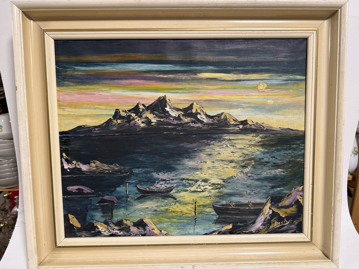 Bech Vogt-Sørensen (1919–?), Ölgemälde auf Leinwand, Meer und Insel im Mondlicht, signiert Bech, Maße mit Rahmen: 56,5 x 47,5 cmLager: 1