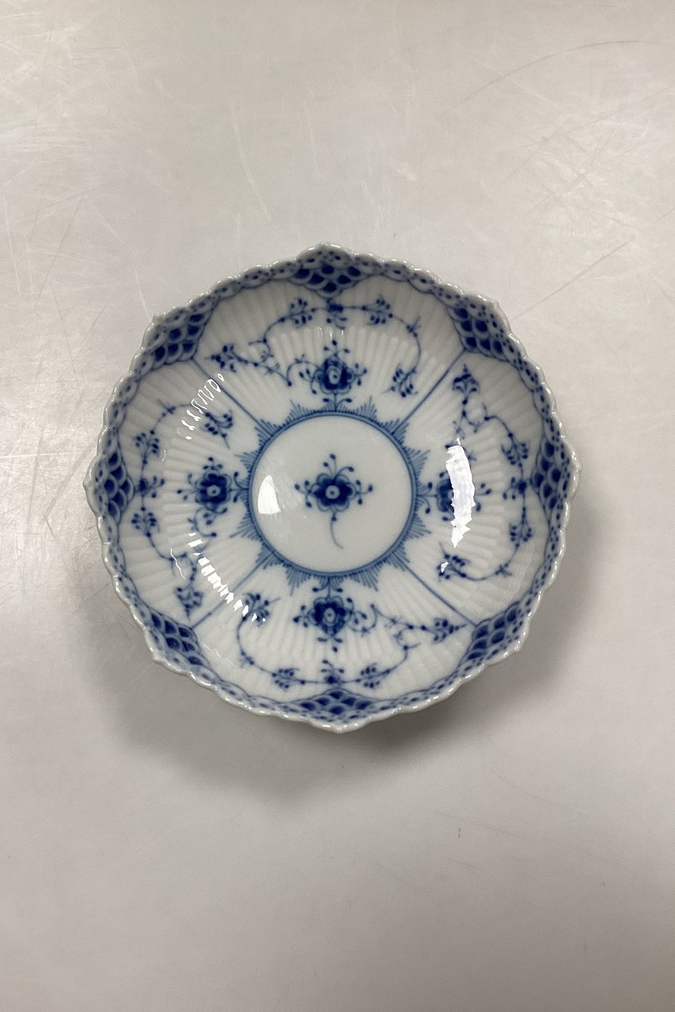 Royal Copenhagen Musselmalet Halvblonde Skål på fod No. 511 Måler 17,5 cm / 6.89 in. 3. Sortering i fin hel stand.