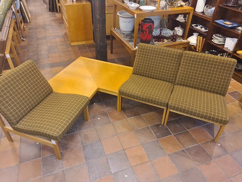 Ole Gjerløv Knudsen/ Torben Lind sæt af 3 Moduline lounge stole udført i eg og betrukket med uldstof. Fremstillet hos France & Søn ca. 1970'erne. Pæn brugt stand. Sofabord medfølger ikke.
