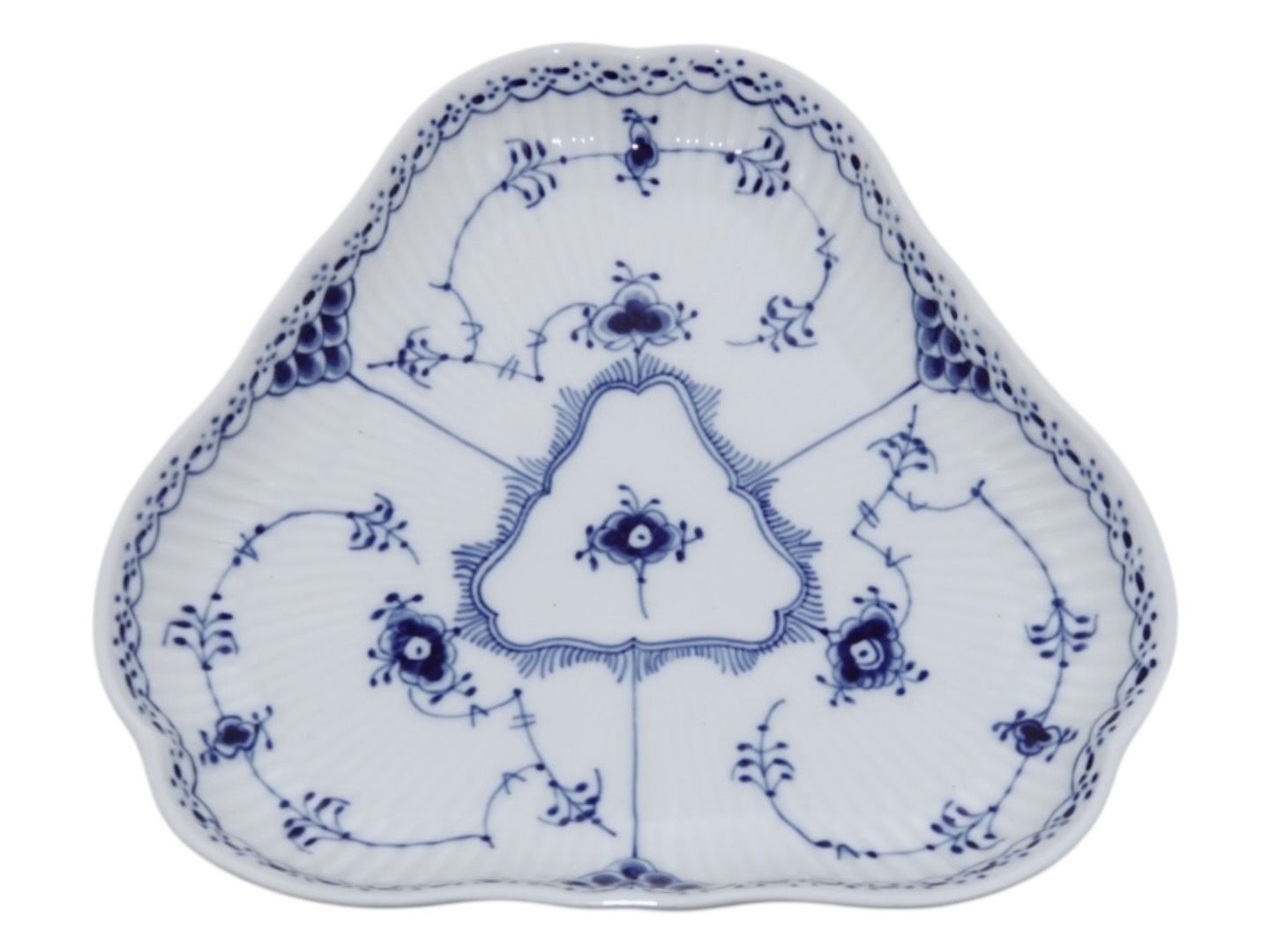 Royal Copenhagen Musselmalet Halvblonde, trekantet fad.Af fabriksmærket kan det udledes, at denne er produceret