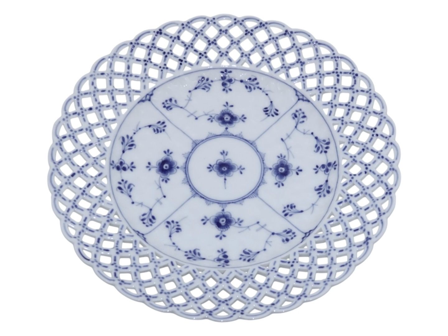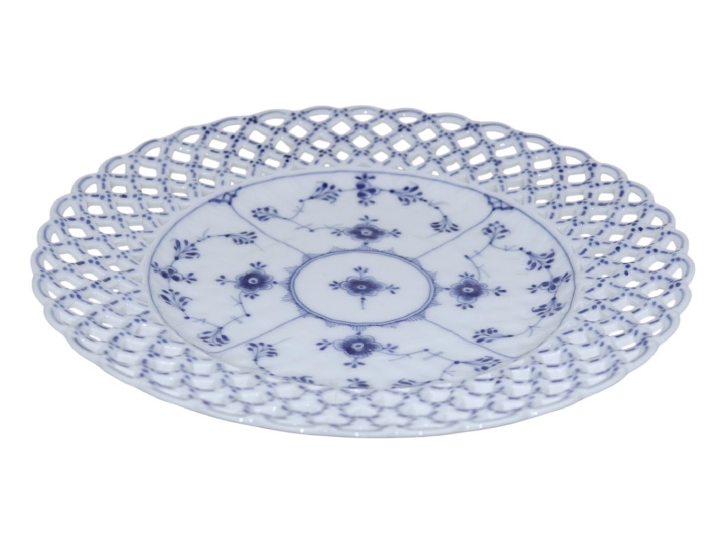 Royal Copenhagen Musselmalet Helblonde, dobbeltblonde tallerken.Fabriksmærket viser, at disse er produceret mellem 1894 og 1897.