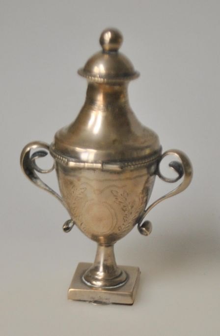 Mathias Lind (1831–1920), Ringkøbing, Dänemark: Großes Hauptwasserei aus Silber. Spätes Empire. Vasenform. 1871. Innen vergoldet. Im Einbalsamierungsraum gestempelt. Höhe: 10,5 cm. Mit Gravur: BK Andersen Holck 1871.Bestellnummer: 28872