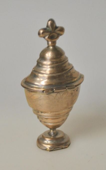 Niels Peter Falck (1779–1858), Holbæk, Dänemark: Barockes Hauptwasserei mit Deckel und Einbalsamierungskammer. In der Einbalsamierungskammer gestempelt. Mit seitlichen Verzierungen. Höhe: 10,5 cm.Bestellnummer: 28873