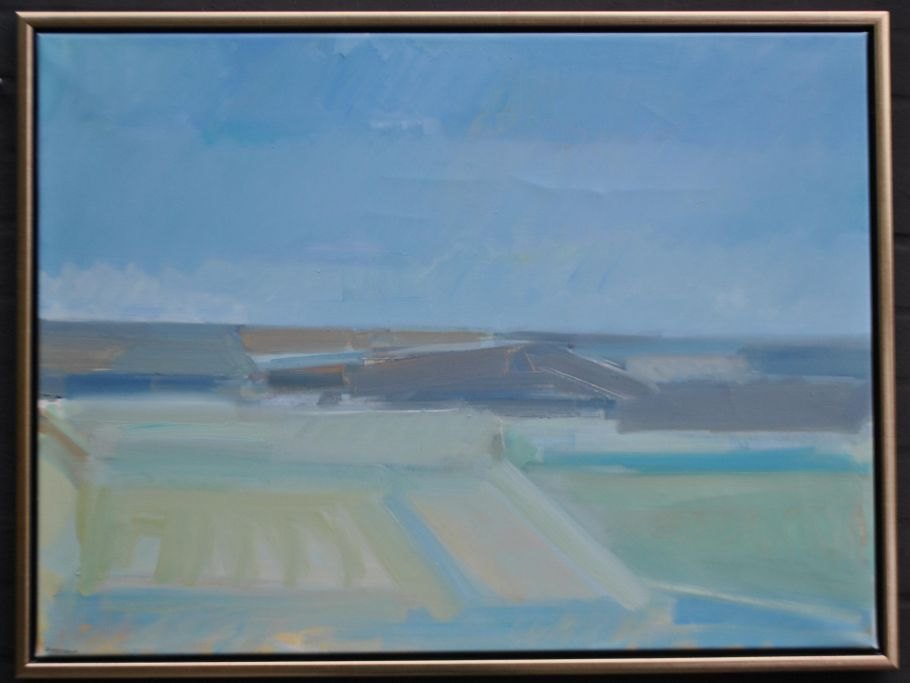 Petersen, Frans Vester (1934–1972) Dänemark: Landschaft. Acryl auf Leinwand. Signiert: F. Vester-P. H: 58 cm. B: 78 cm.Gerahmt: H: 62 cm. B: 83 cm.