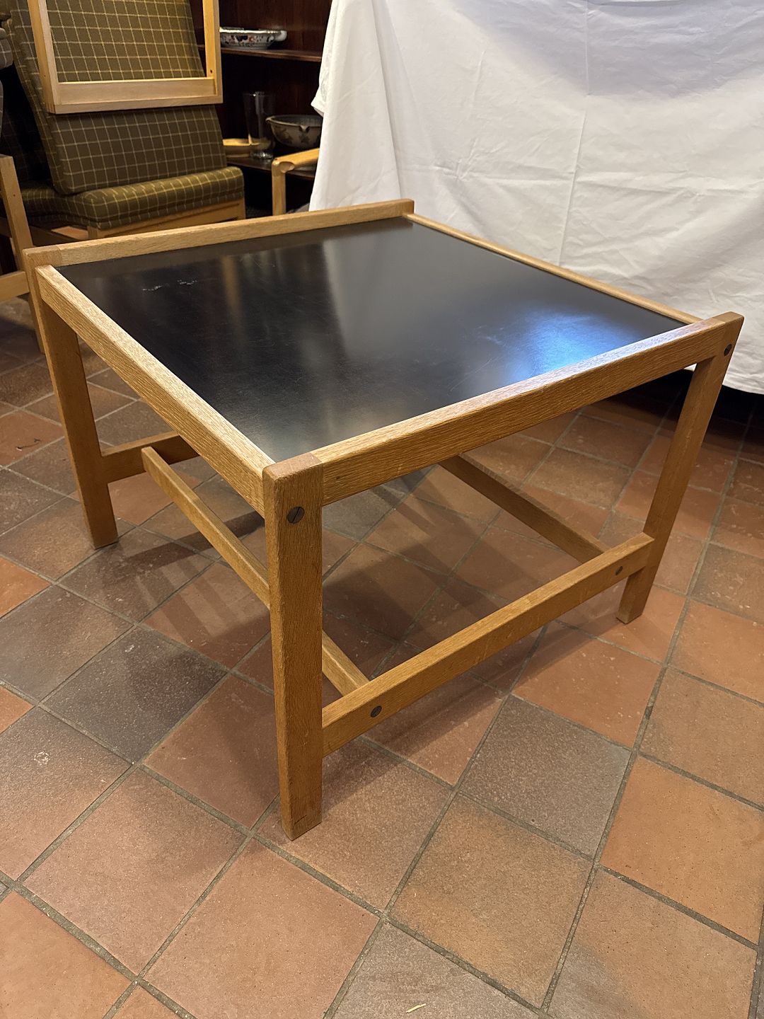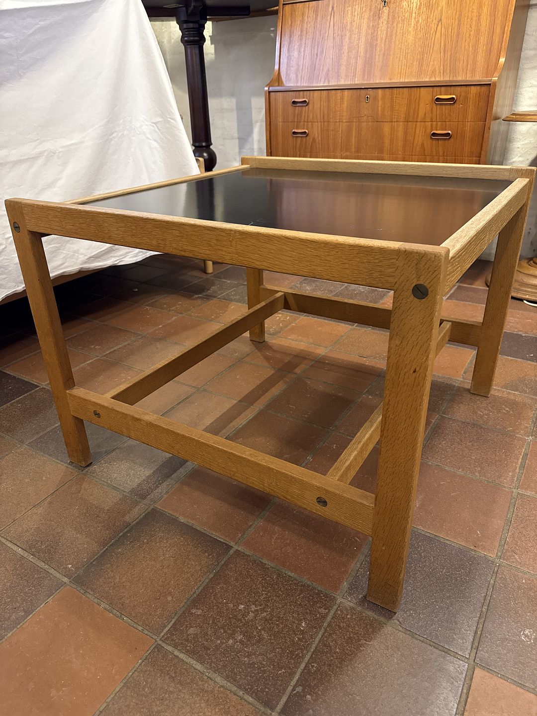 Børge Mogensen sofabord model 5376. Udført med stel af eg samt plade af sort Formica. Fremstillet hos Frederica Stolefabrik 1968. Fremstår med brugsspor, plade med ridser og mærker. Se foto.