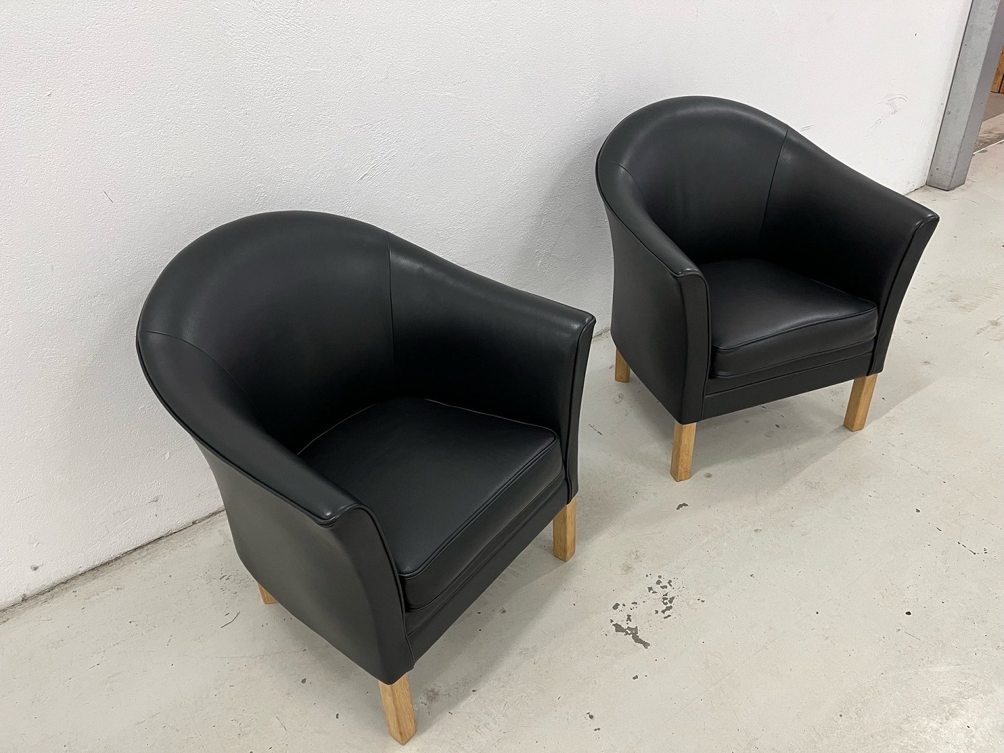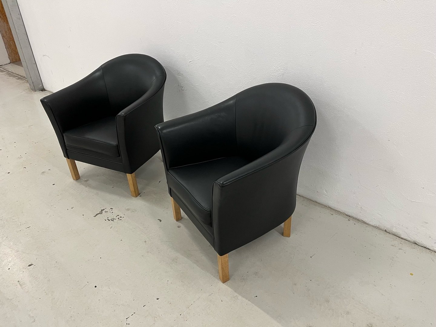 880Selten angebotenes Set: 2 Stück. Mogens Hansen MH80 „Queen’s Chairs“. Neupreis: 40.210 DKK (für das Set). Angebotspreis: 10.000 DKK pro Stück. Angeboten wird ein exklusives Set bestehend aus zwei Mogens Hansen MH80 Sesseln, bekannt als „Queen’s Chair“. Die Sessel sind mit schwarzem Semianilinleder bezogen und haben Beine aus unbehandelter Eiche. Sie sind unbenutzt, wurden lediglich ausgepackt und aufgebaut und befinden sich daher in neuwertigem Zustand. Aus einem rauch-, tier- und kinderfreien Haushalt. Der MH80 Sessel von Mogens Hansen verdankt seinen Beinamen „Queen’s Chair“ seiner Verwendung an Bord des königlichen Schiffes Dannebrog. Der Sessel besticht durch seine majestätische Ausstrahlung in Kombination mit herausragendem Komfort und lädt zu einem exklusiven und angenehmen Sitzerlebnis ein. Materialien: Beine aus massiver Eiche, schwarzes Semianilinleder. Produktspezifikationen: Hersteller: Mogens Hansen. Breite: 75 cm. Tiefe: 72 cm. Höhe: 85 cm. Sitzhöhe: 45 cm.