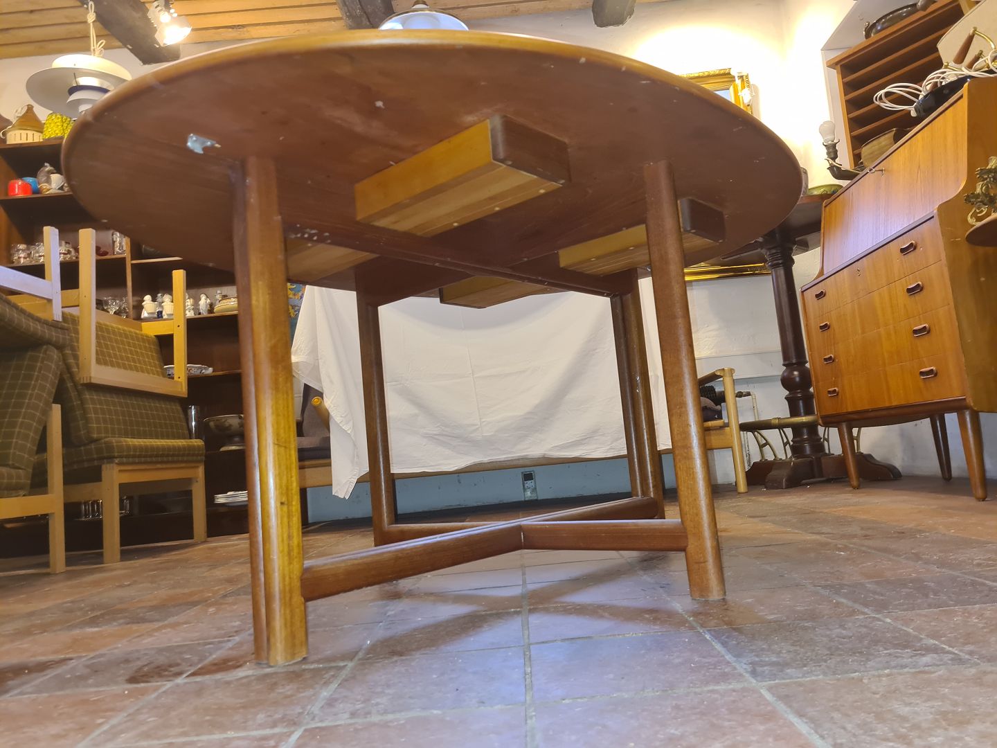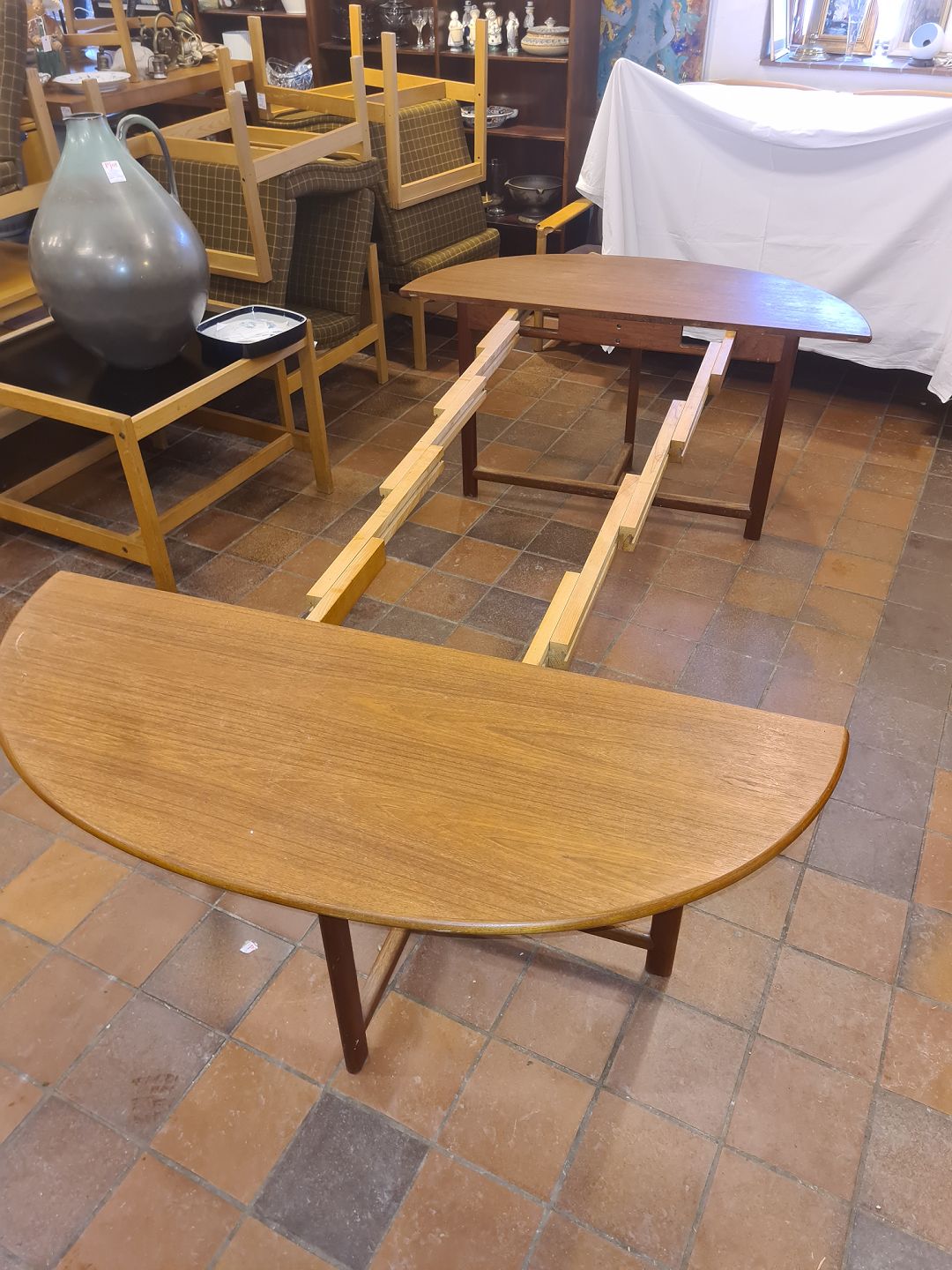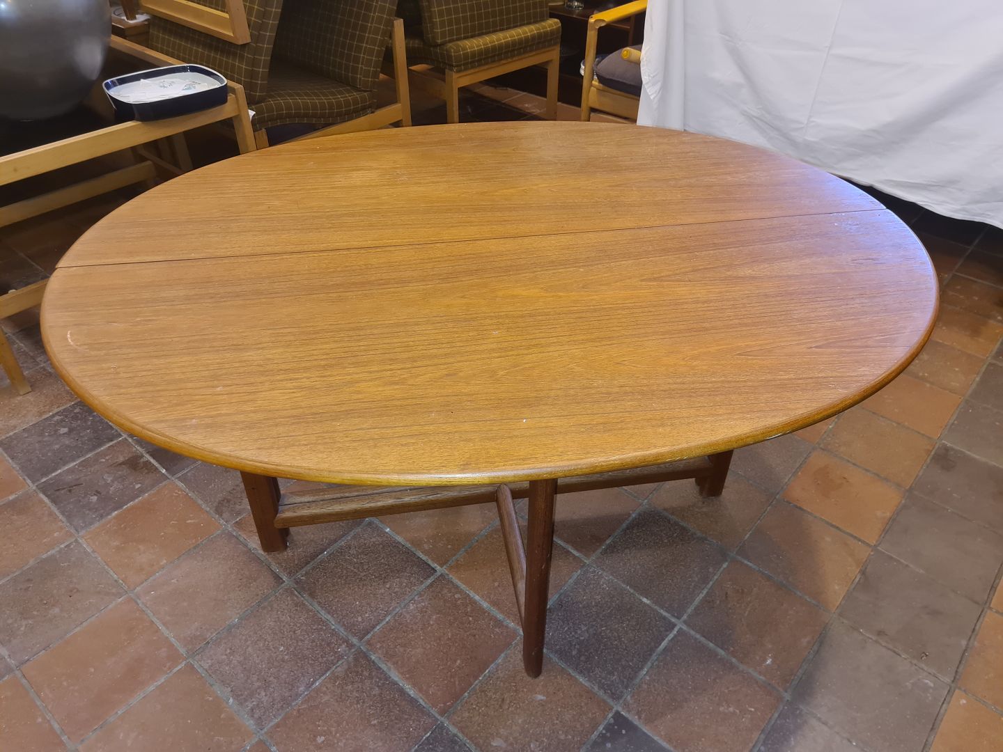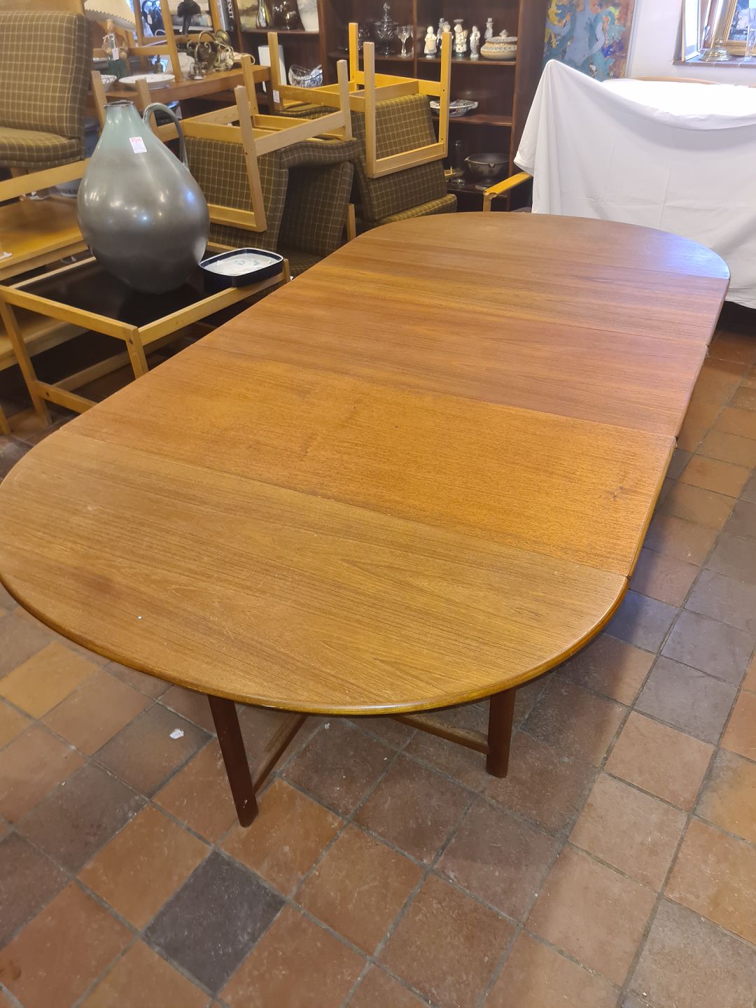 Ovalt bord i teak m. udtræk.Kr. 2800,-