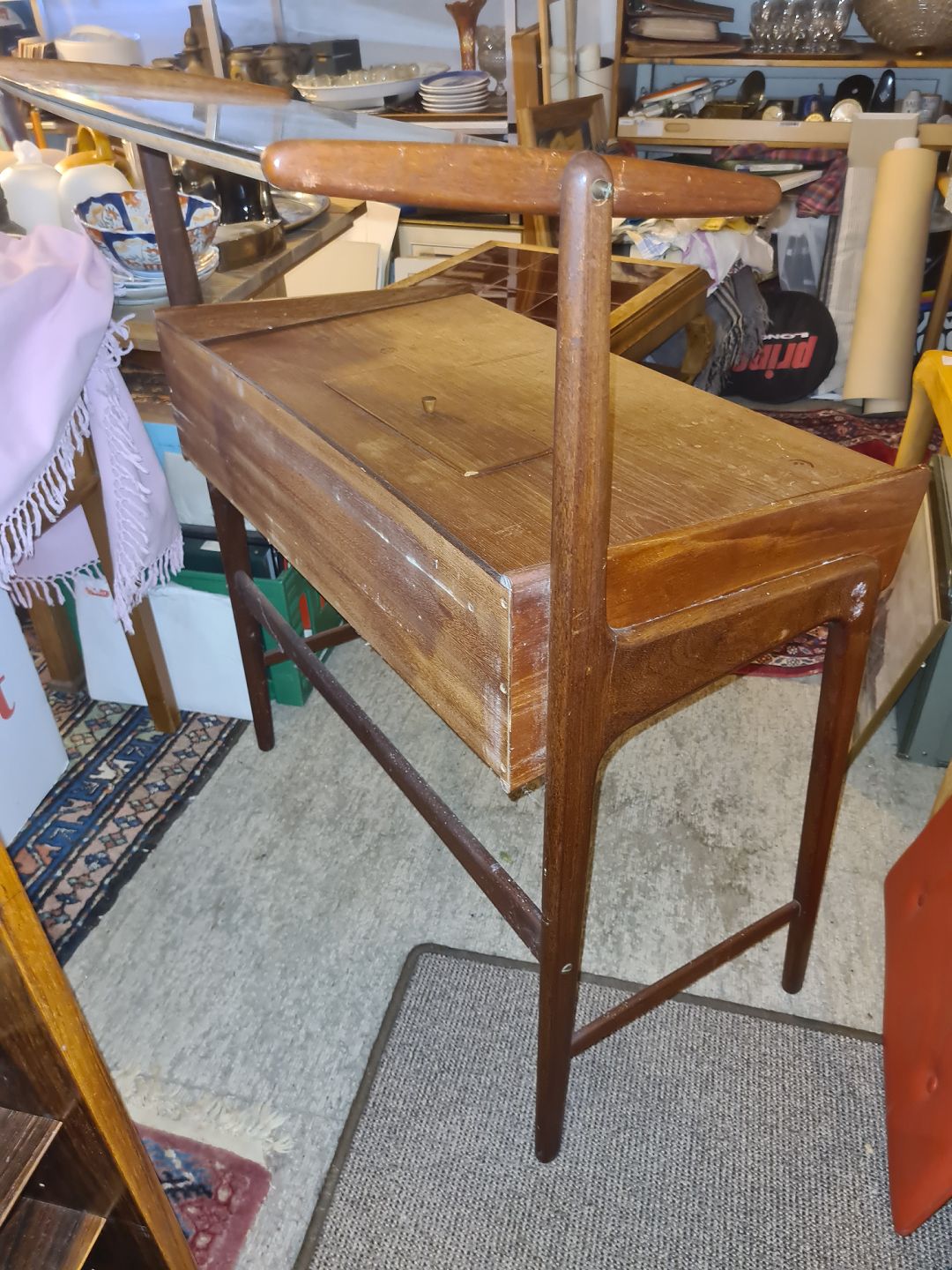 Svend Aage Madsen sminkebord i teak m. spejl med vippe funktion. Fremstillet ca. 1950'erne.