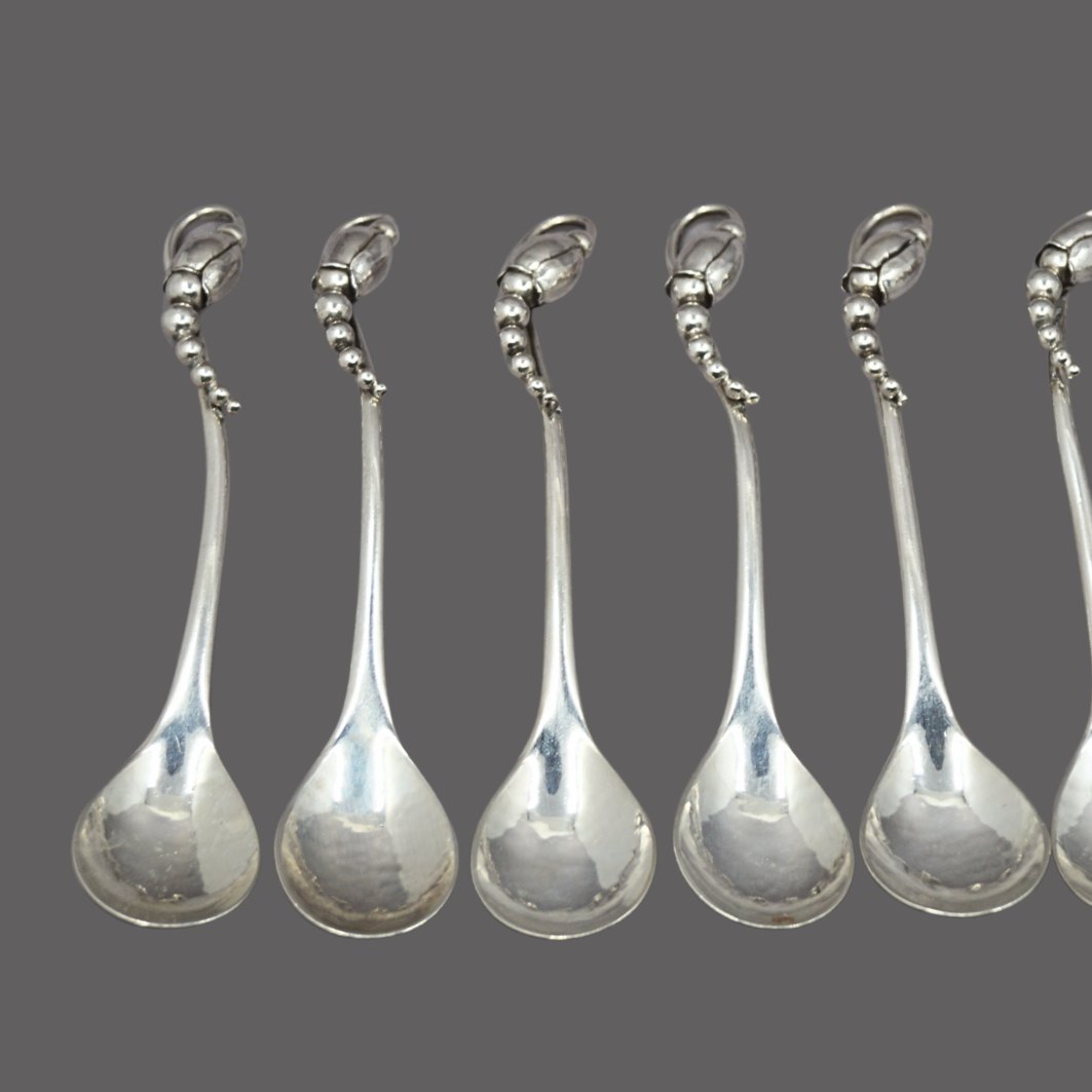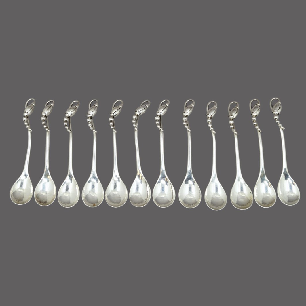 Georg Jensen; Sæt af 12 Magnolia kaffeskeer i sterlingsølv