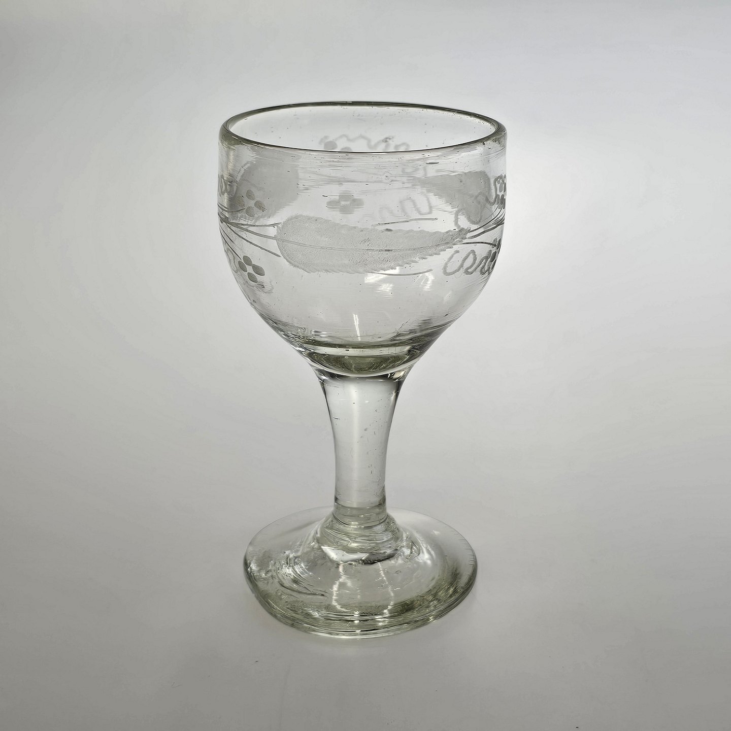 Håndblæst vinglas med spidsbladet løvslibning Producent ukendt