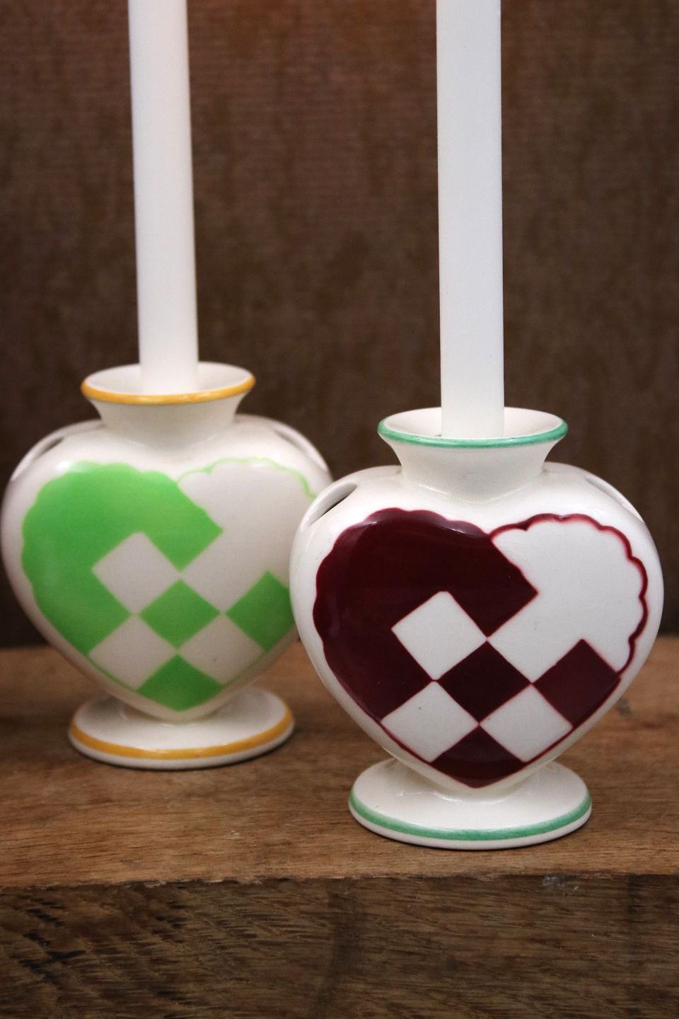 Aluminia julehjerter i fajance med plads til et lille jule stearinlys.