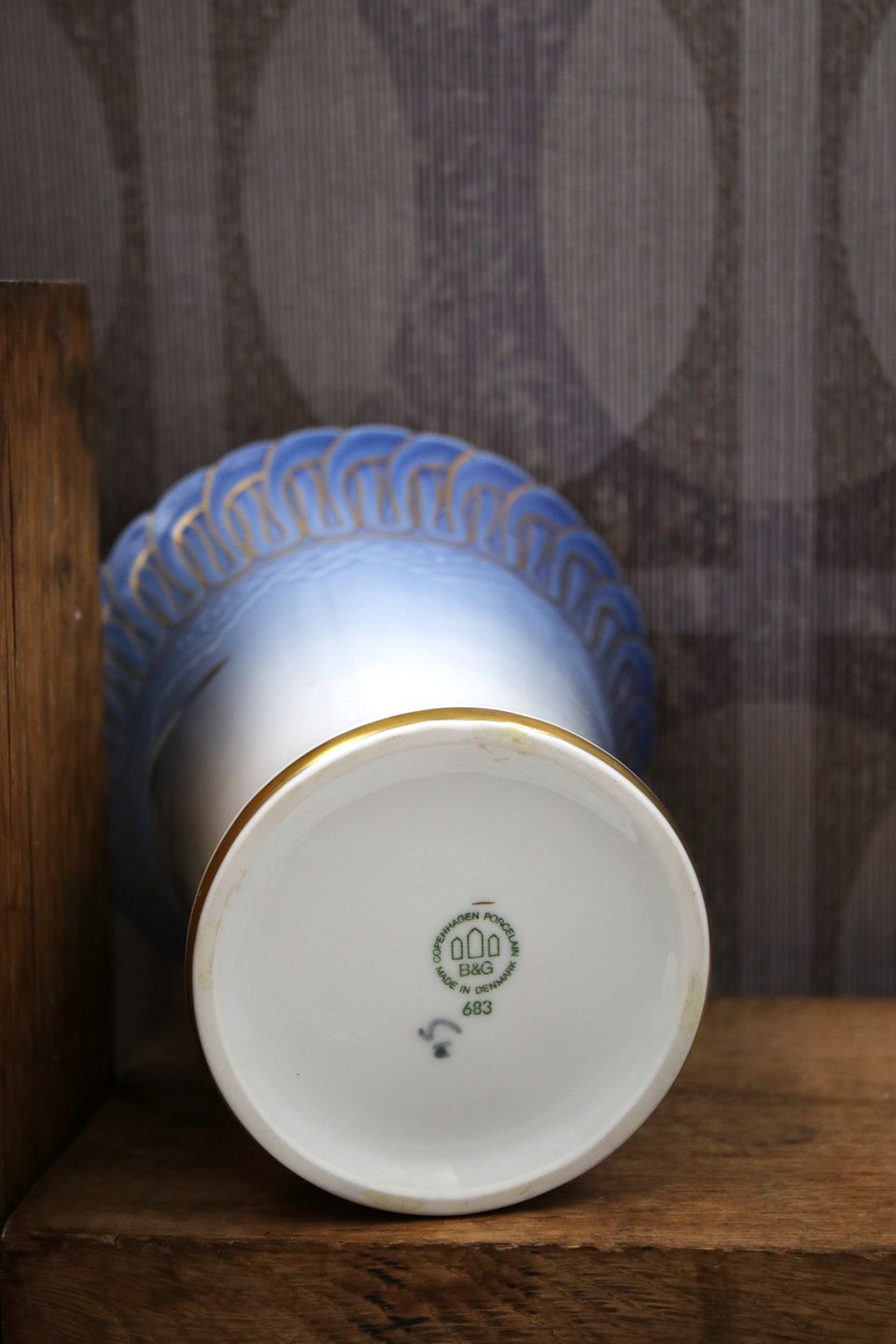 Bing & Grøndahl - B&G vase i mågestellet med guld dekorationer.B&G#683...