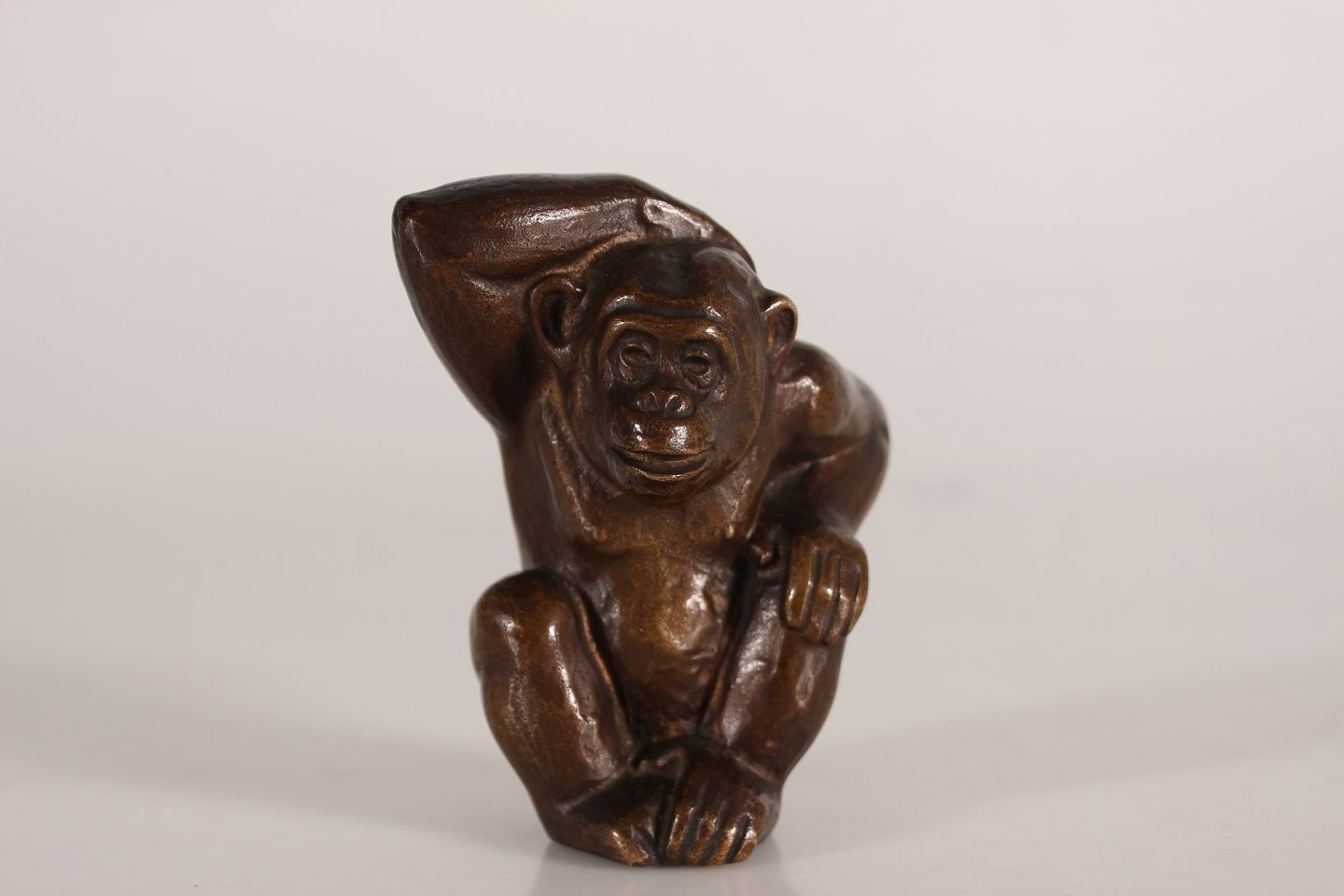 Svend Lindhart (1898-1989)Bronzefigur af siddende chimpanse