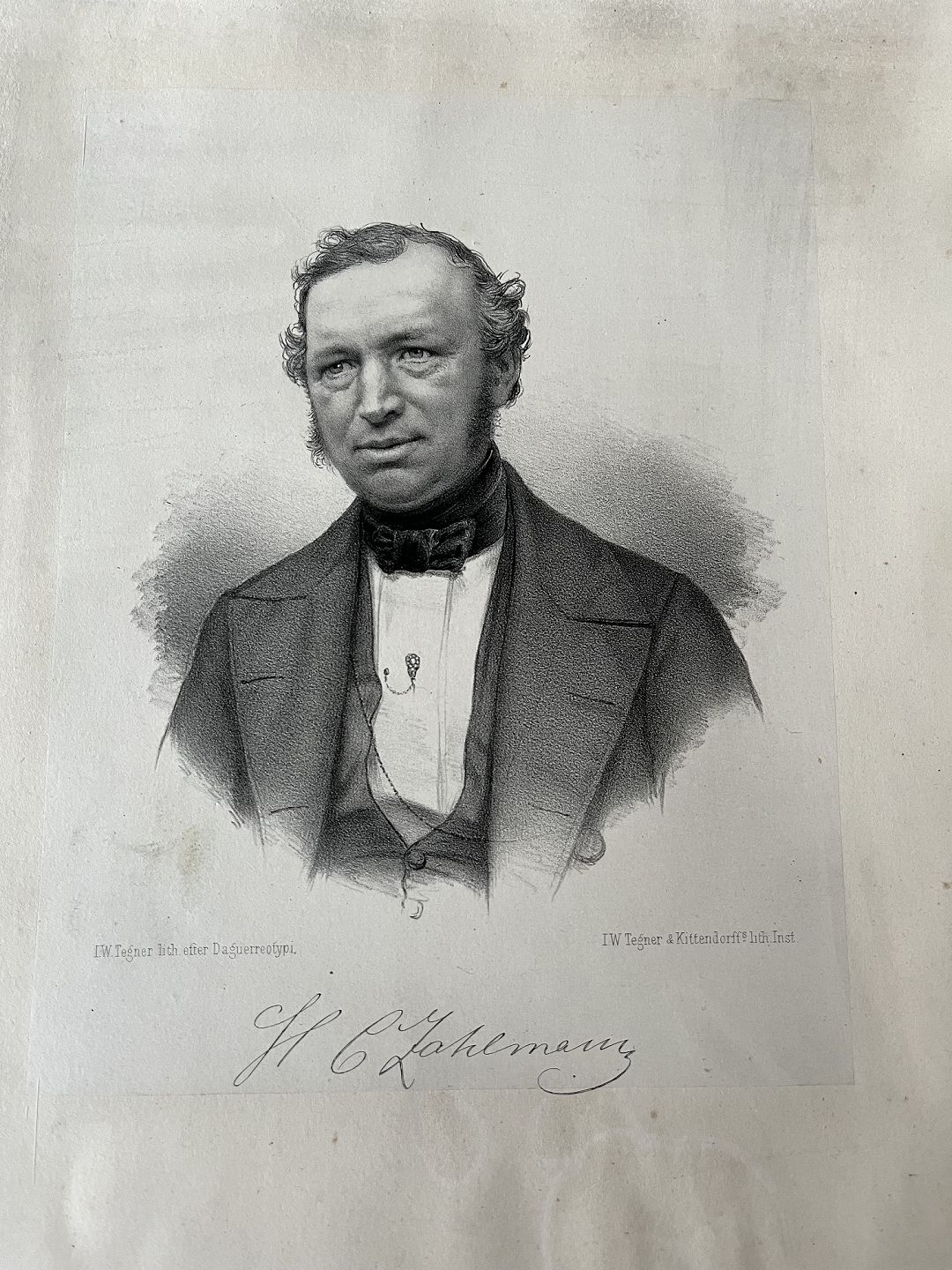 Litografi af Isac Wilhelm Tegner - Portræt af Læderfabrikant H.C. Zahlmann.
