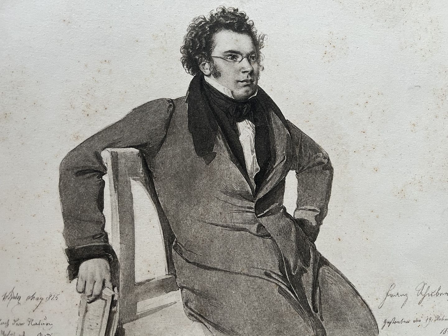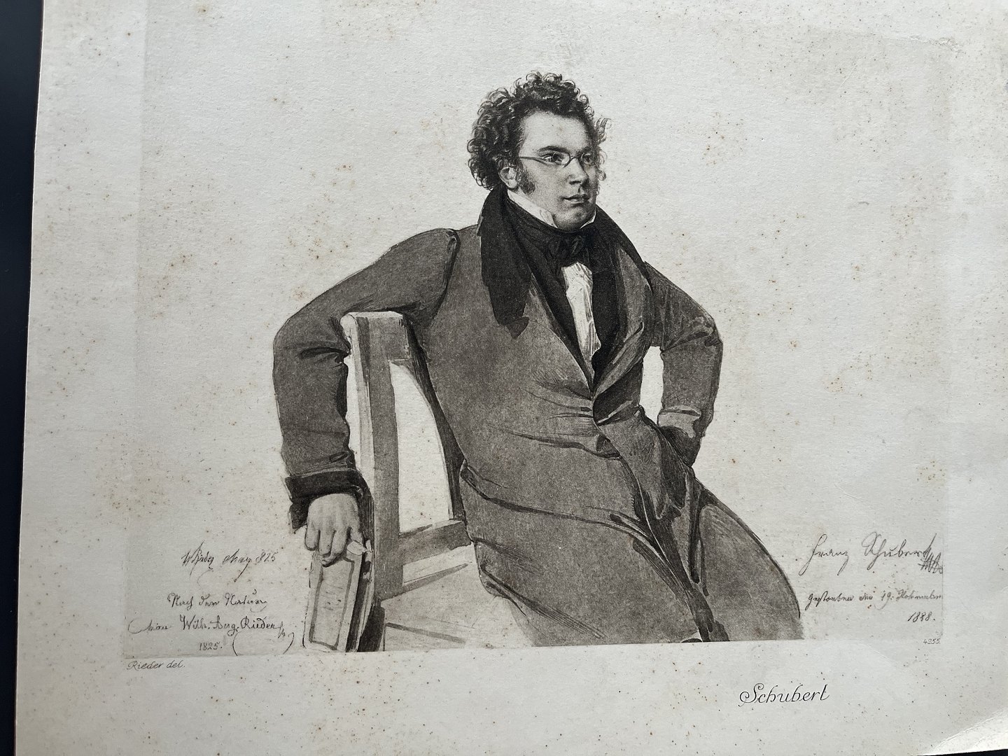 Fotogravure på papir 1888 - Portræt af Komponisten Franz Schubert.