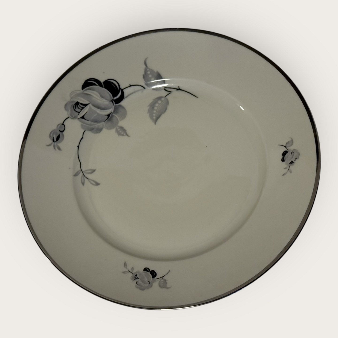 Schwarze Rose, mit Platinrand, KPM, Lyngby, Speiseteller, 21 cm Durchmesser *Guter Zustand*