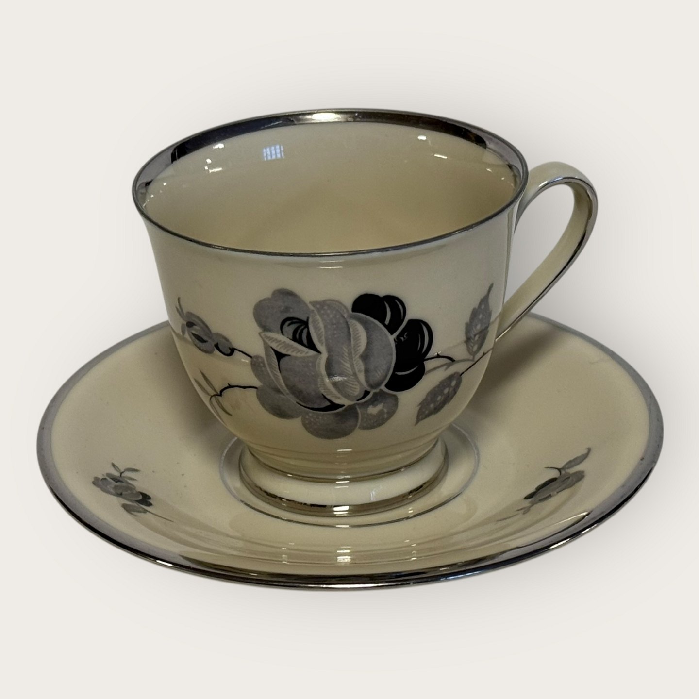 Schwarze Rose, mit Plantin-Rand, KPM, Lyngby, Kaffeetasse, Tassenmaße: Höhe 7,7 cm, Durchmesser 6,5 cm *Guter Zustand*Lager: 10