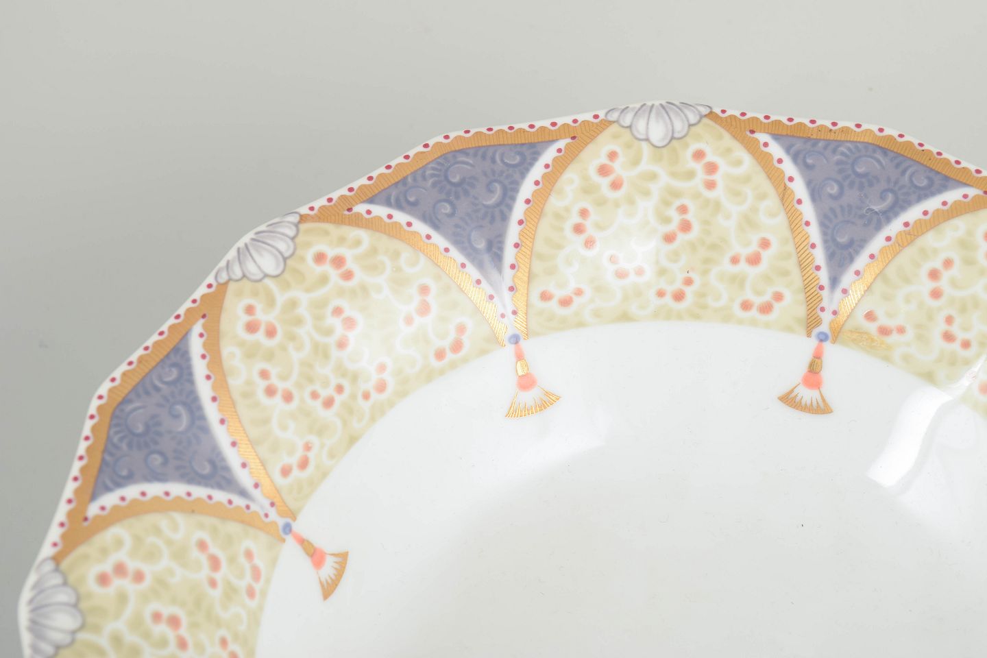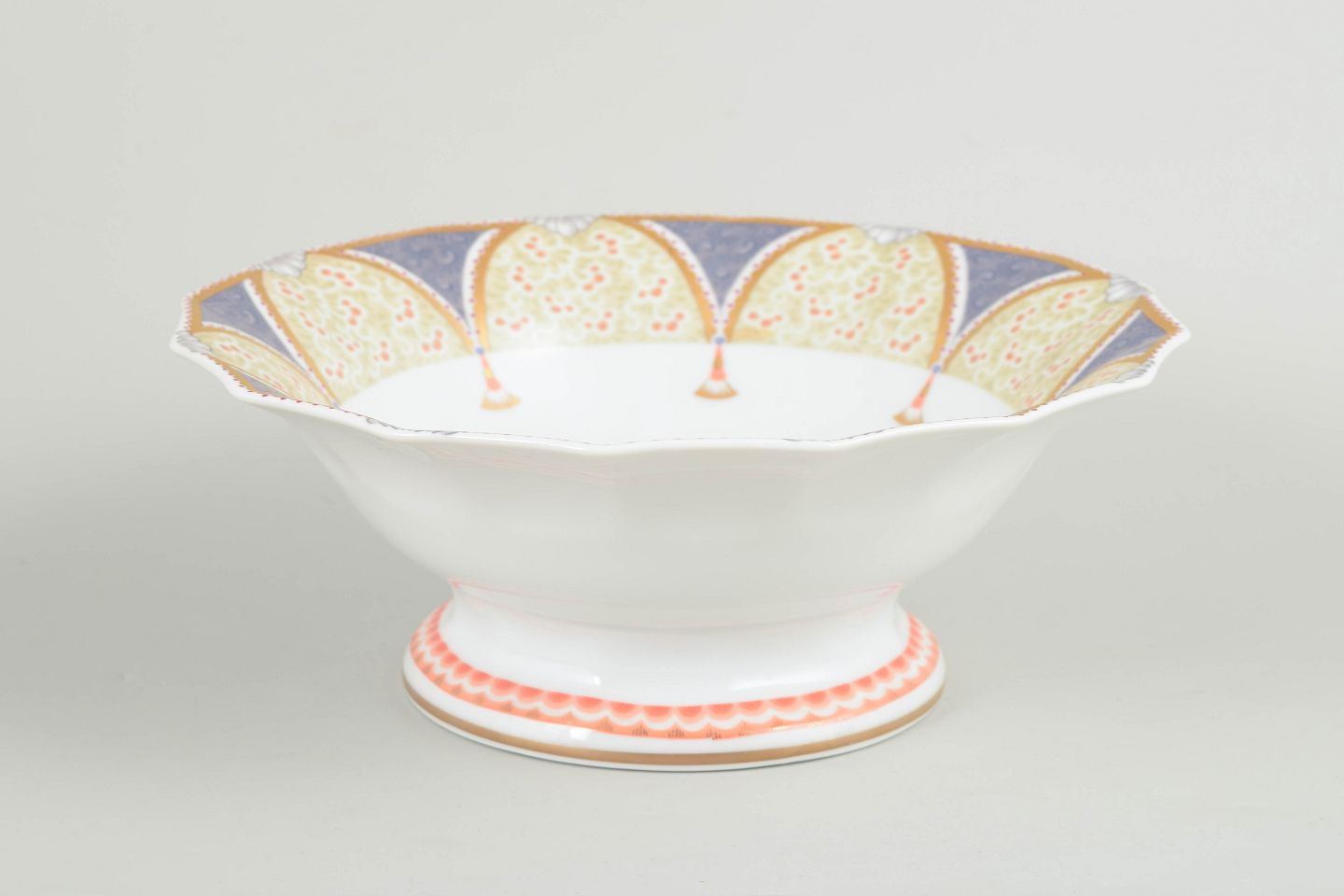 Royal Copenhagen, Fairytale opsats.Stor opsats i hvidt porcelæn med fod, dekoreret med Fairytale-mønster i bløde rosa, gyldne og blå toner langs kanten. Fremstillet i perioden 1992–1999 i 1. sortering. Model 577.
