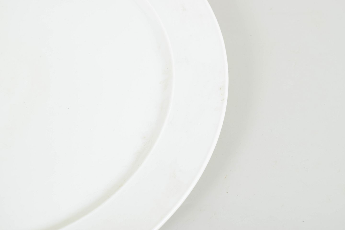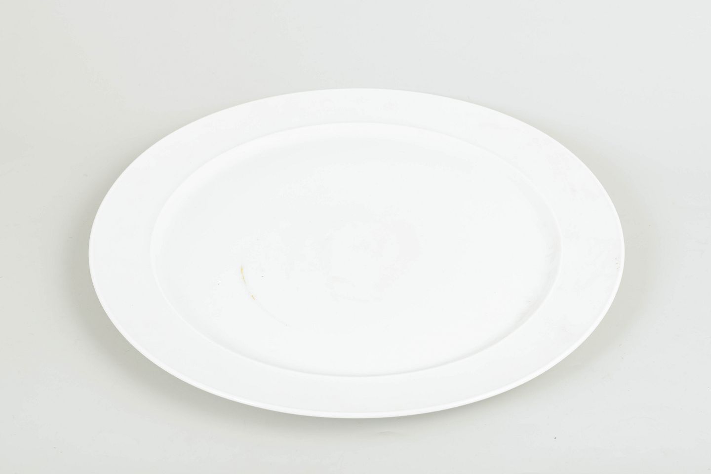 Rosenthal, stort serveringsfad.Stort rundt serveringsfad i hvidglaseret porcelæn med bred fane. Produceret i Tyskland og mærket på undersiden med grønt Rosenthal-stempel.