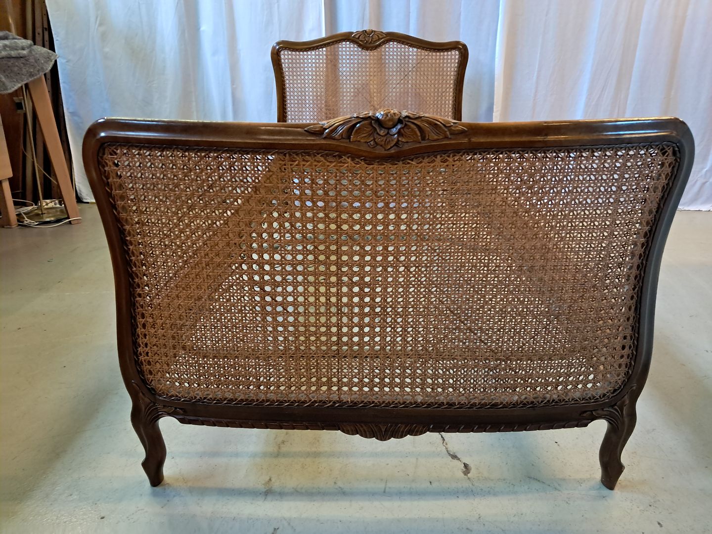Seng i nødetræ med rørflet, fra 1950erne.