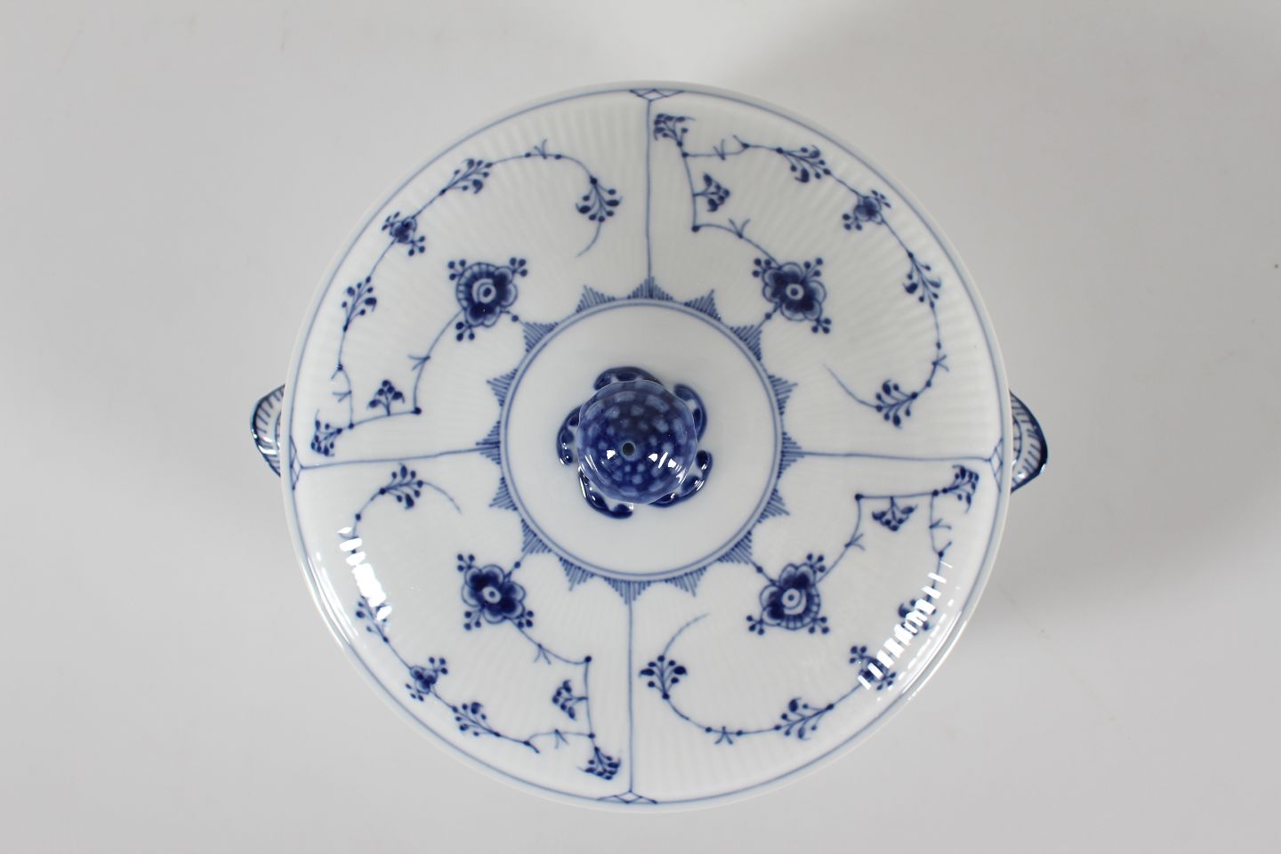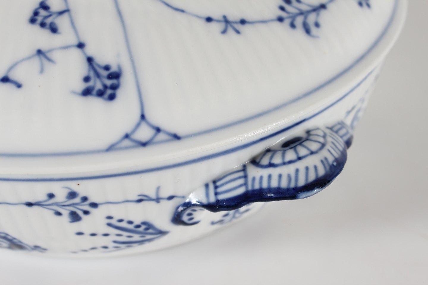 Royal Copenhagen Musselmalet RifletRundt antik lågfad med stempel fra