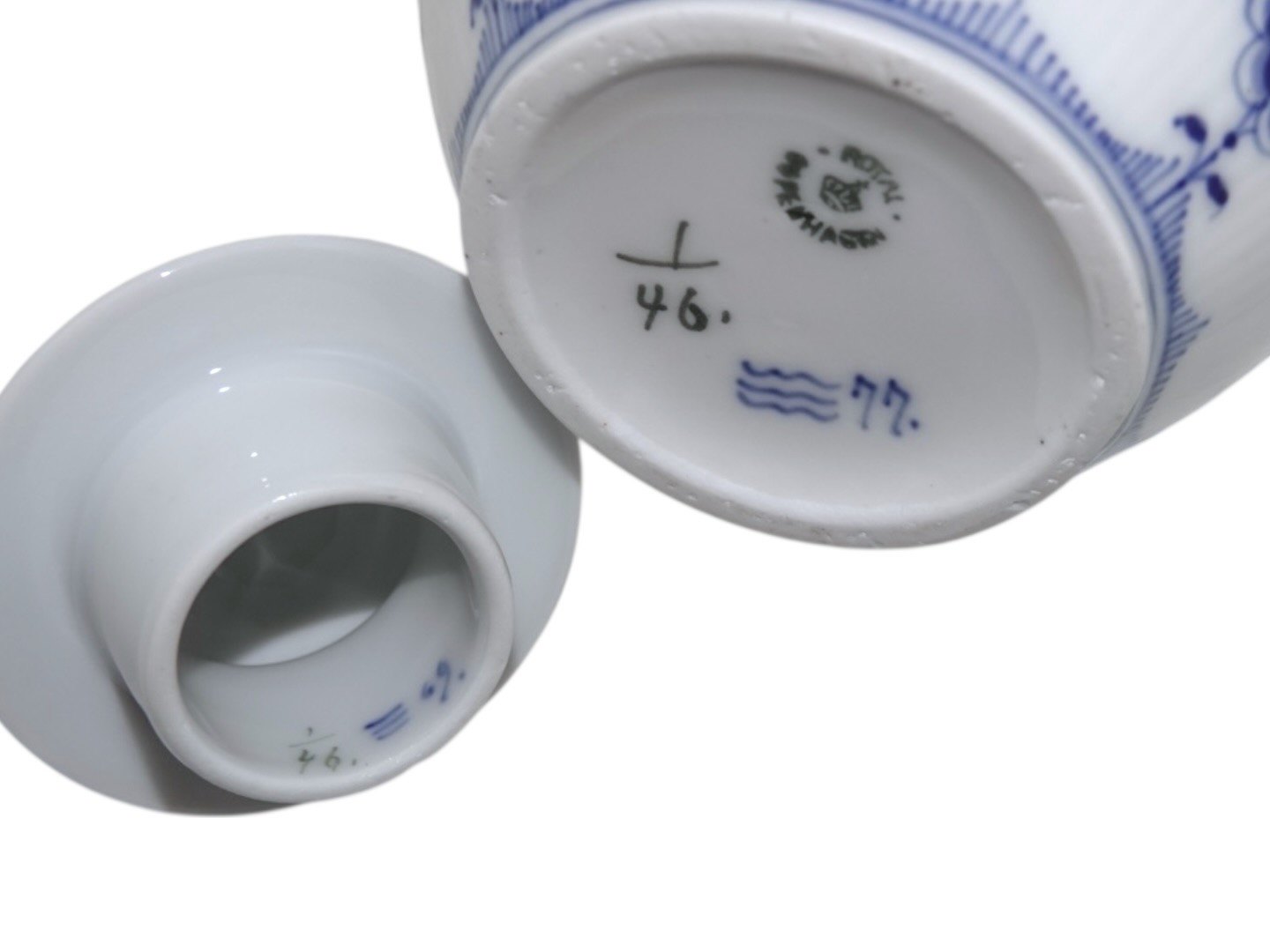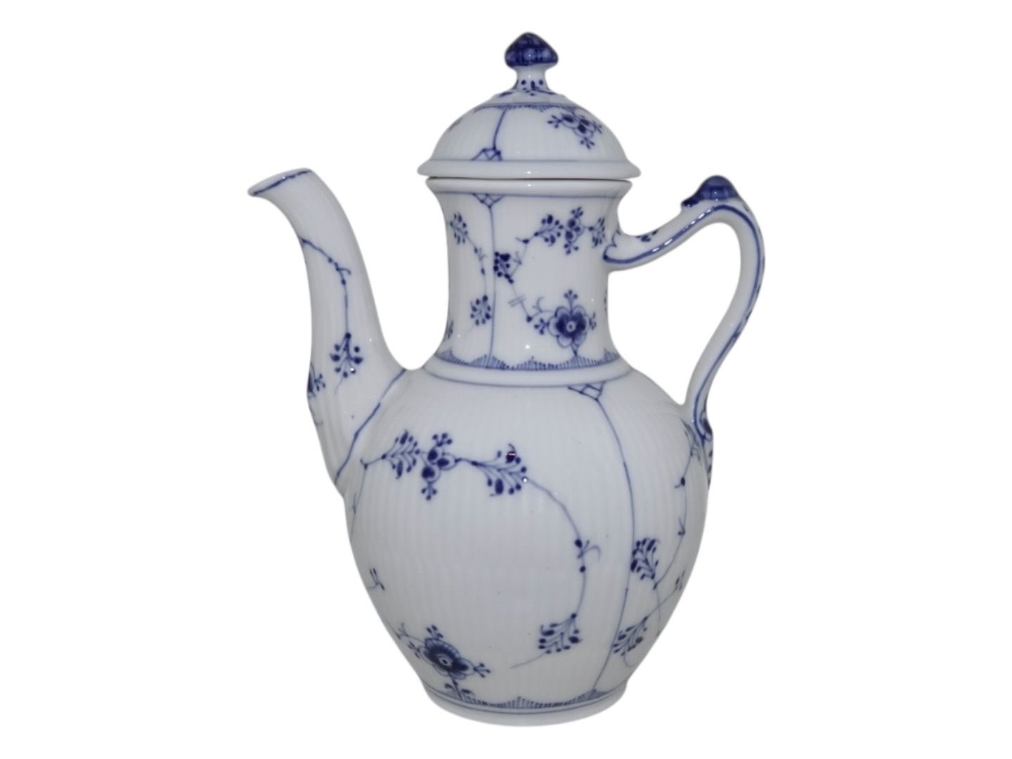 Royal Copenhagen Musselmalet Riflet, lille kaffekande.Dekorationsnummer 1/46.
