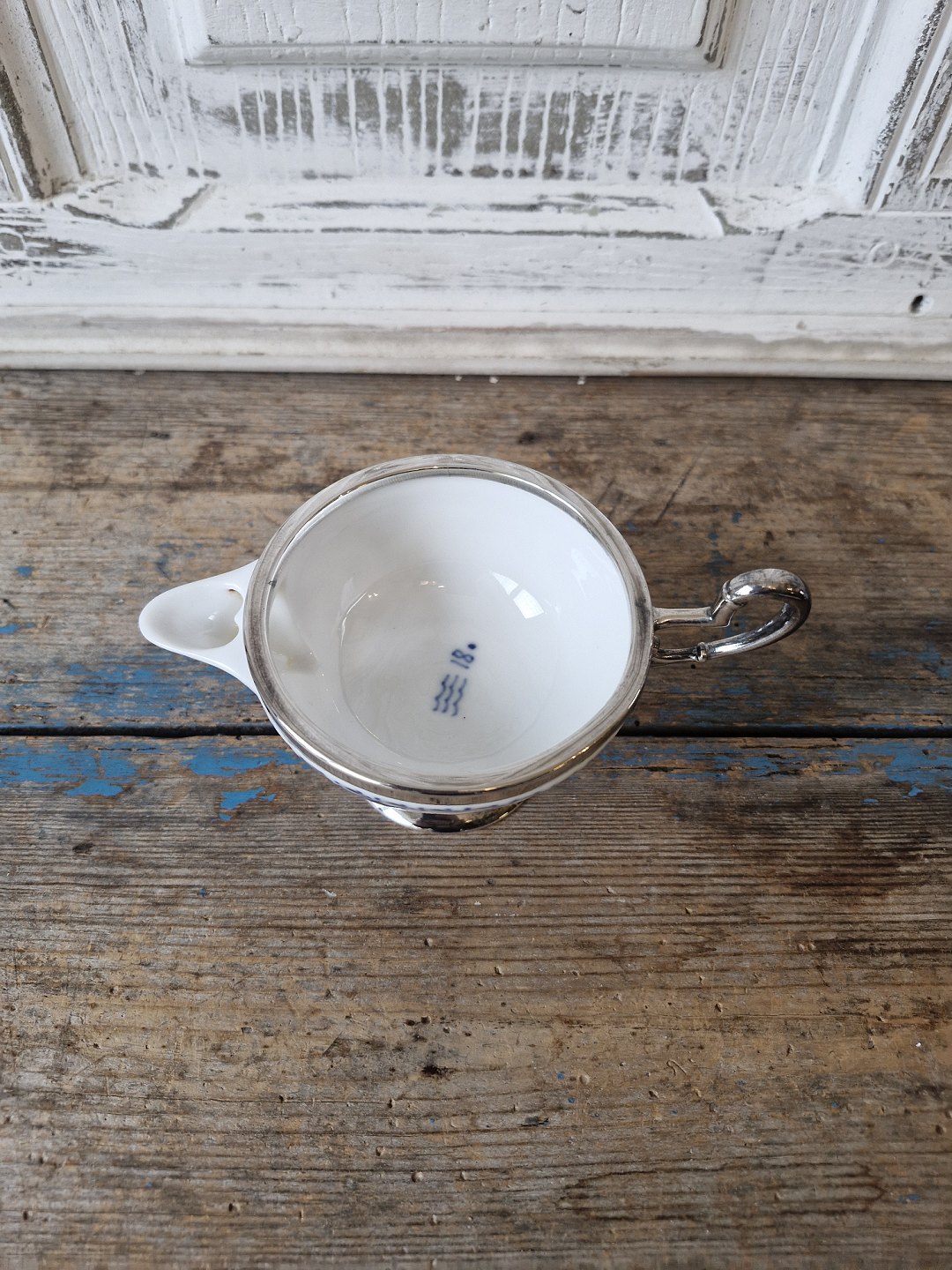 Royal Copenhagen Musselmalet halvblonde flødekande med forsølvet montering