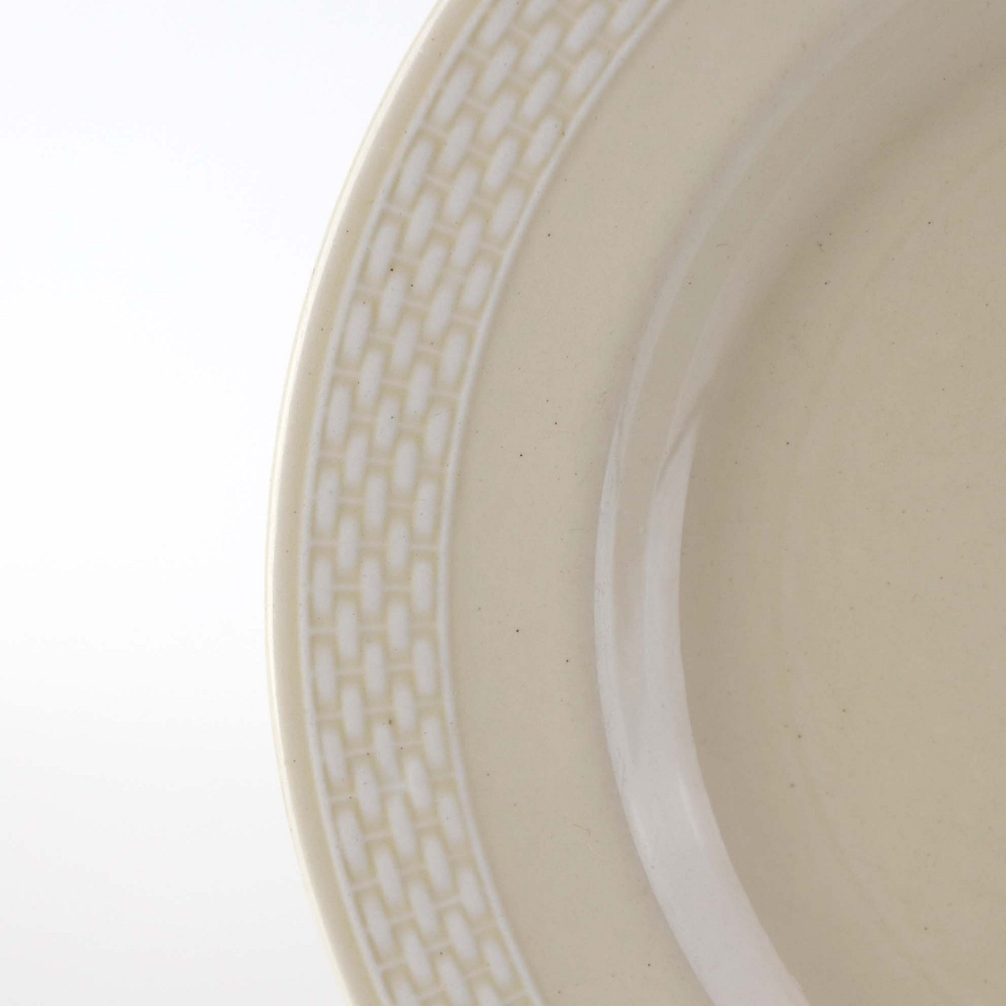 Sandfarvet fajancestel i stelform Viktoria II - Fletværk med dekoration af hvidt flet på gullig baggrund.