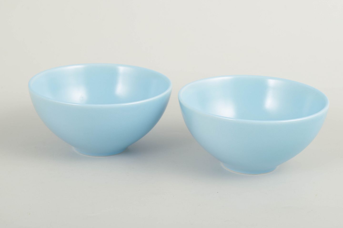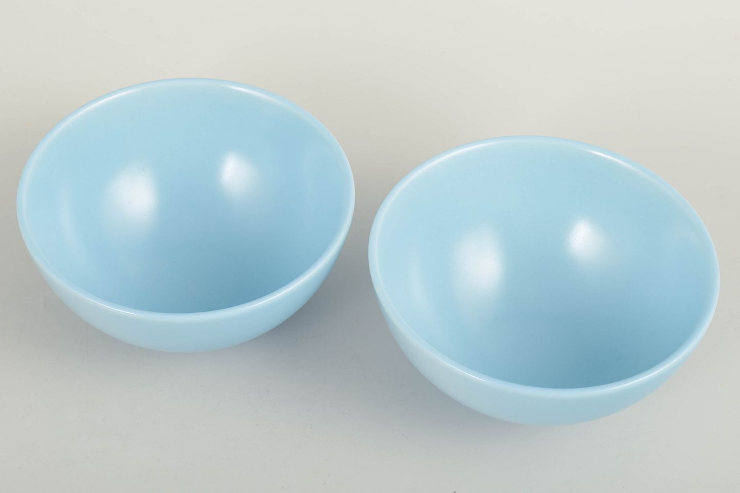 Höganäs Keramik, sæt af to skåle i turkis glasur.Runde skåle i stentøj med ensartet turkis glasur og let konisk form.