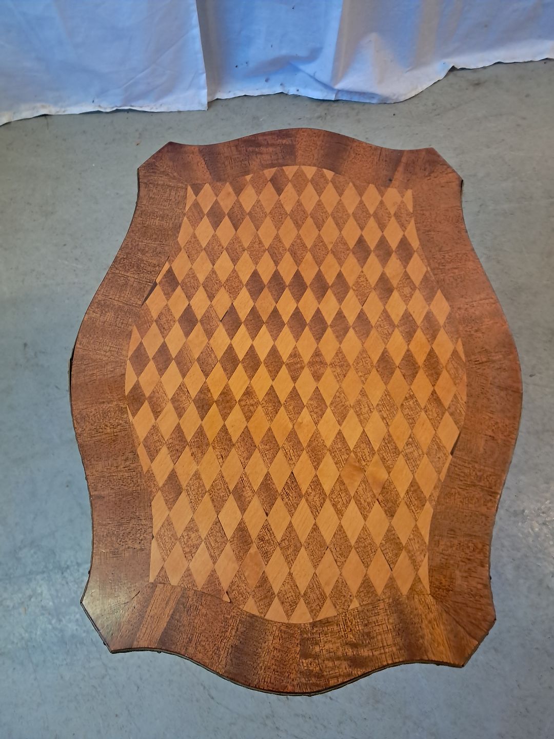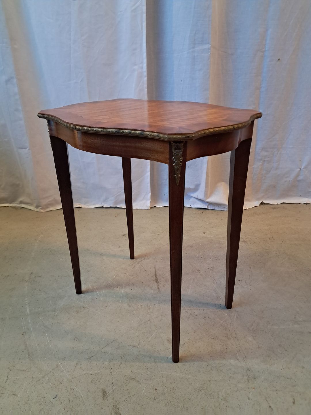 Sidebord i bøgetræ og fineret mahogni, fra 1990erne.Det har små brugsspor.
